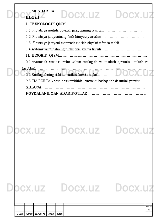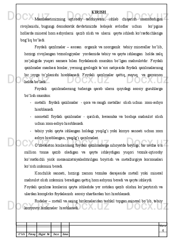 Foydalanilgan ADABIYOTLAR ………………………………………...