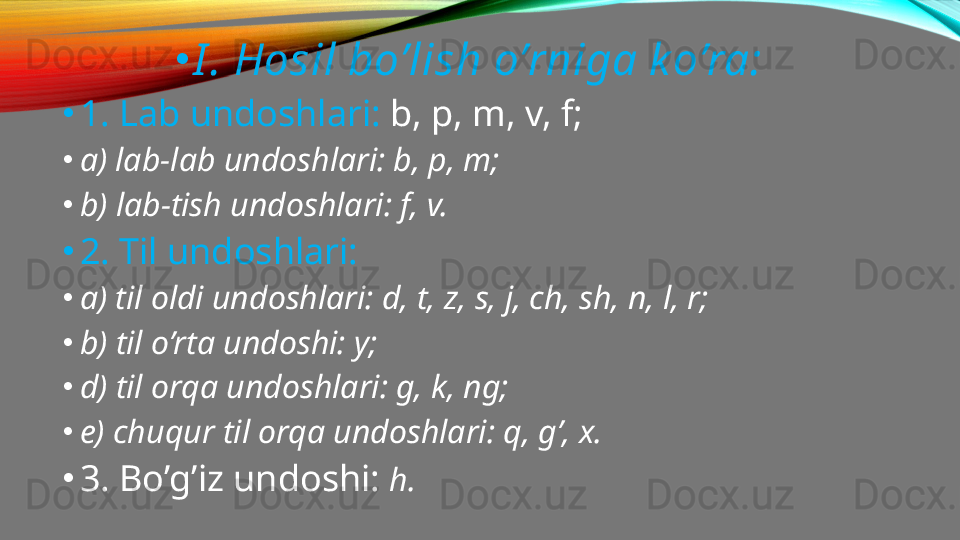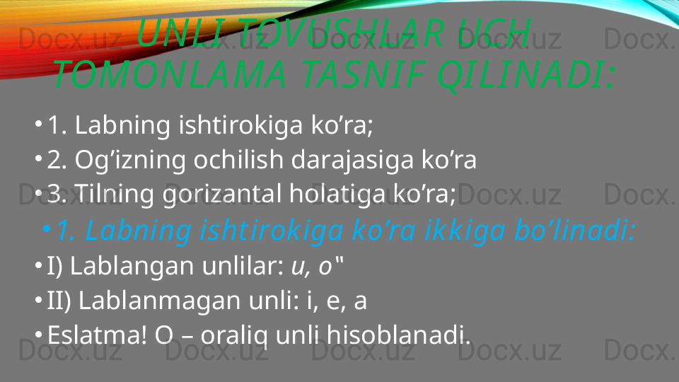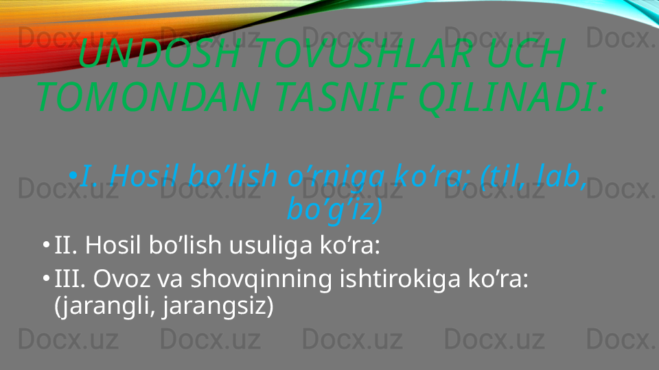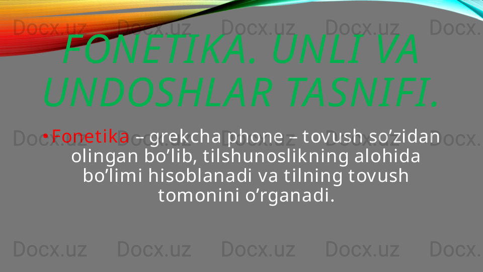 FONETIKA. UNLI VA UNDOSHLAR TASNIFI