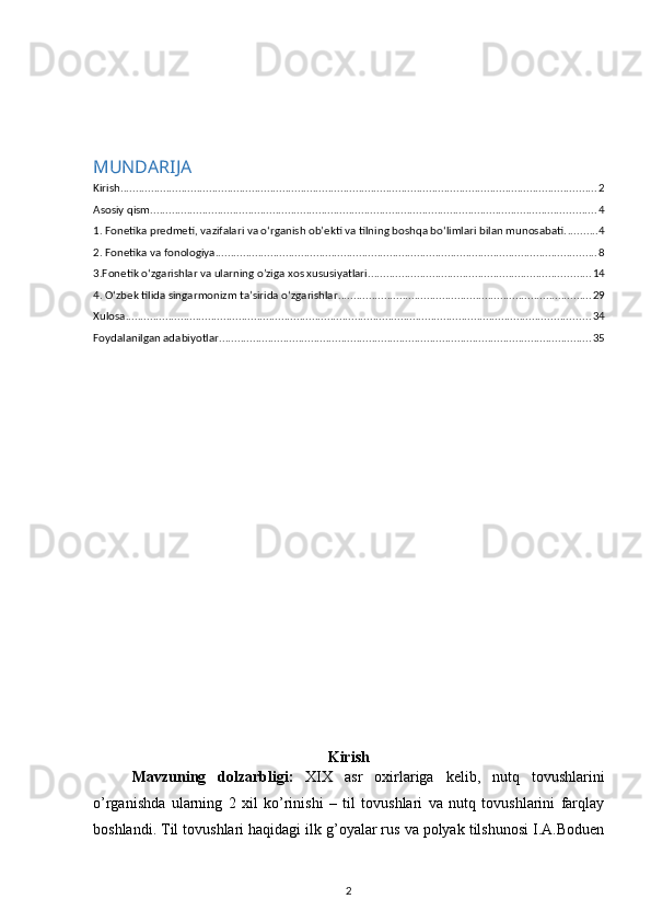 MUNDARIJA