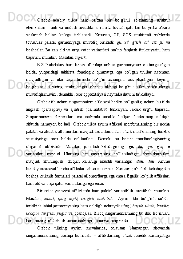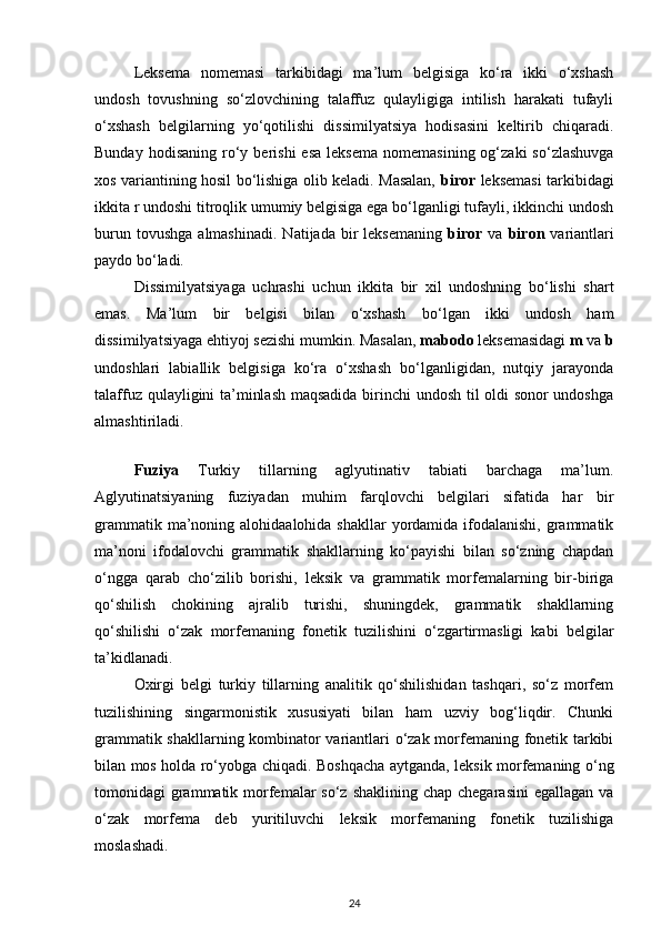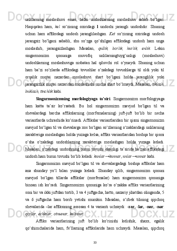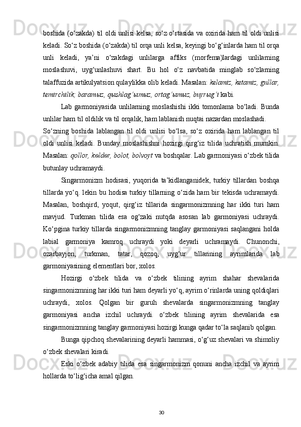 4. O‘zbek tilida singarmonizm ta’sirida o‘zgarishlar 28