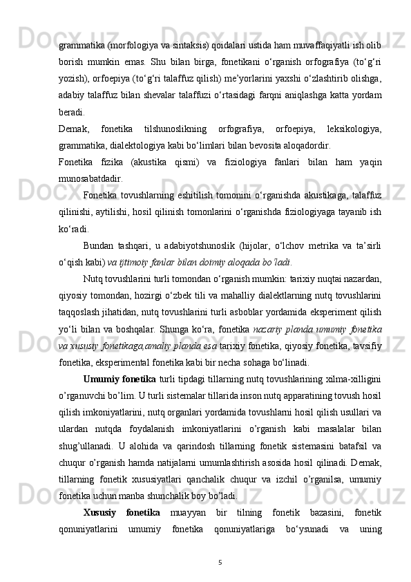 Fonetika va fonetik ozgarishlar