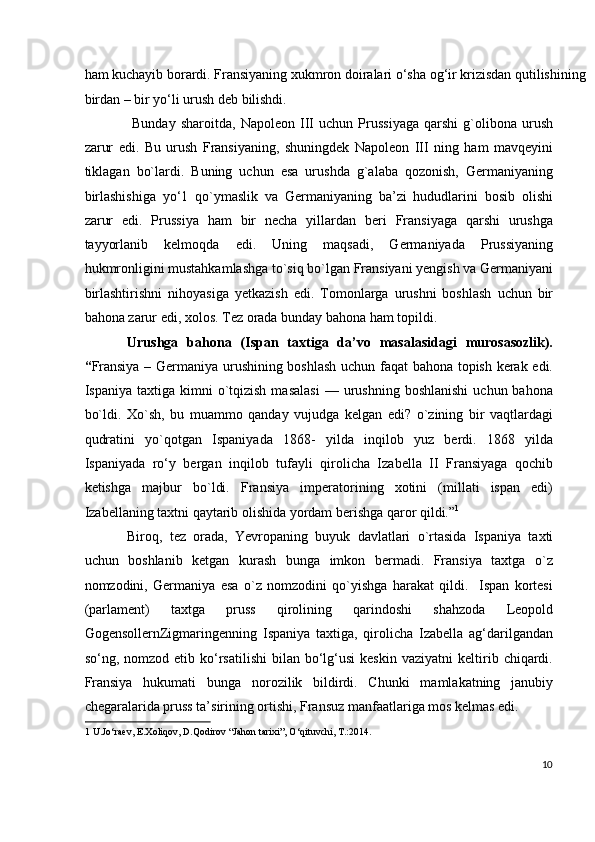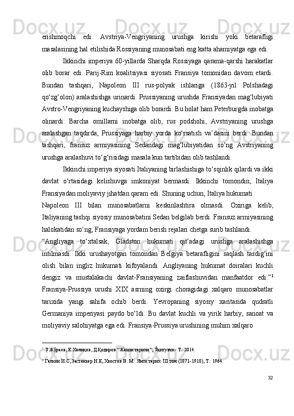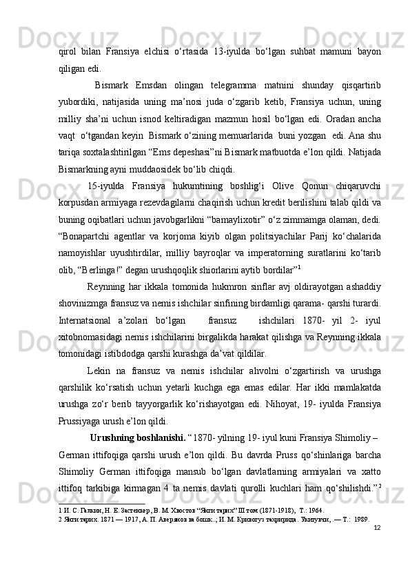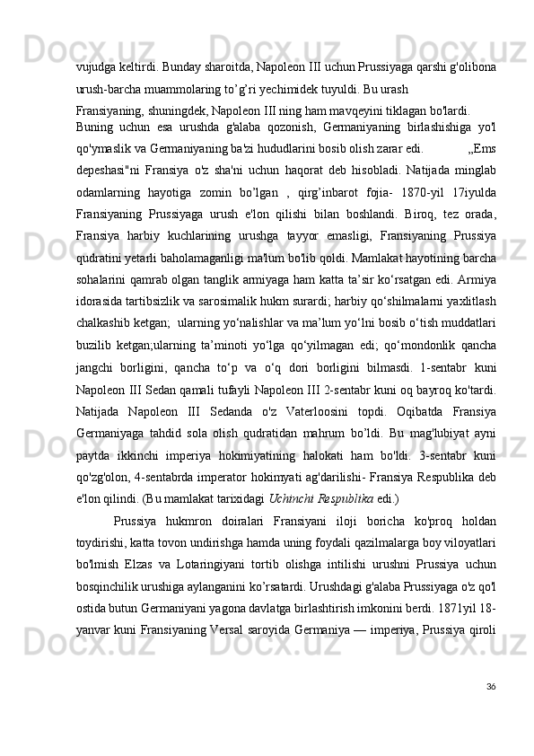 Fransiya-Prussiya urushi (1870-1871) davri diplomatiyasi