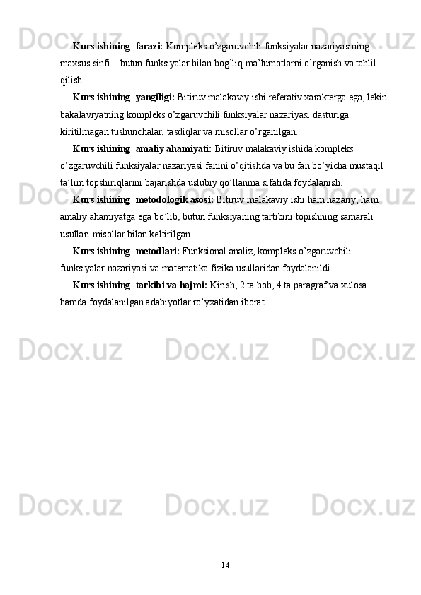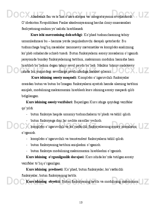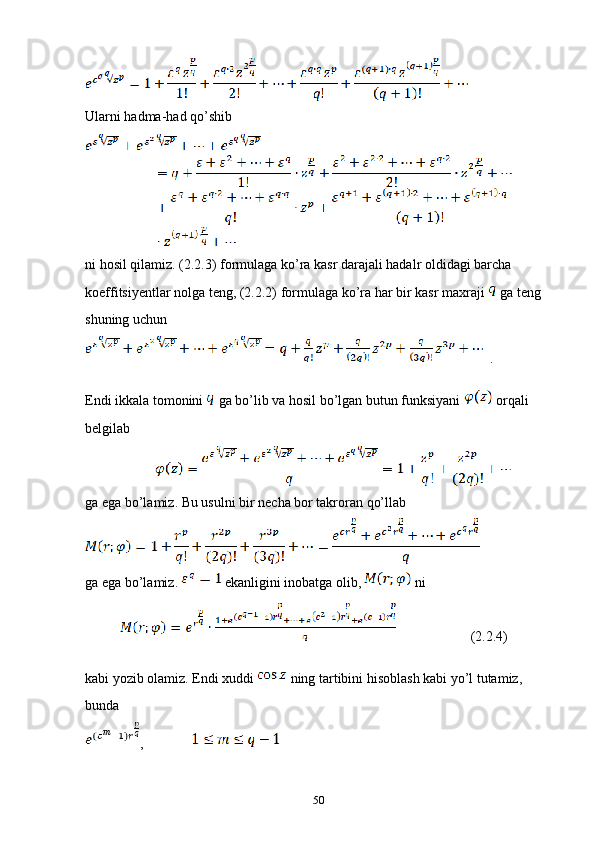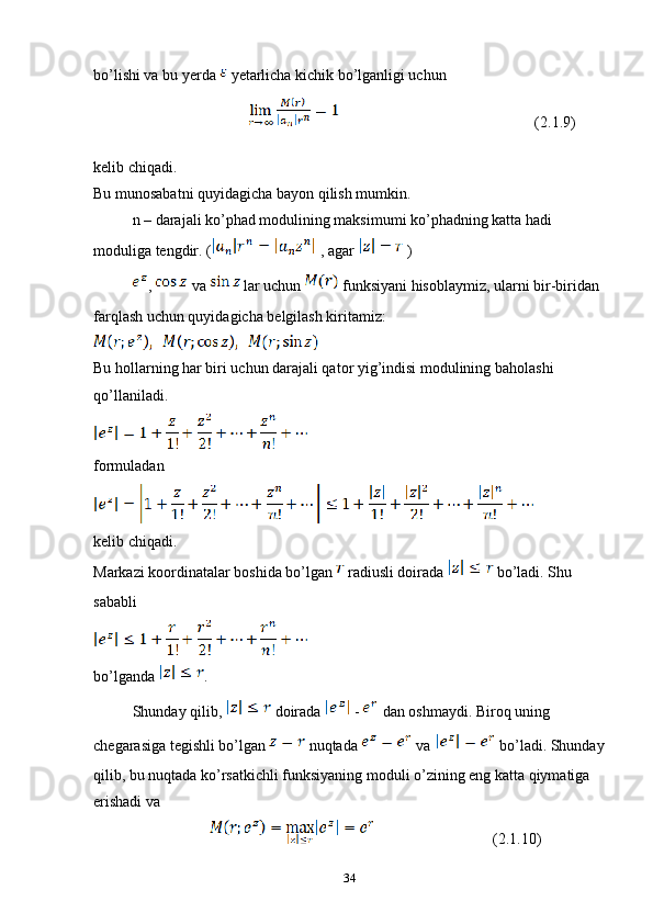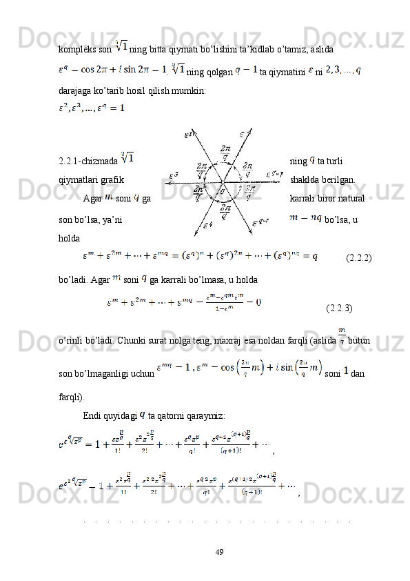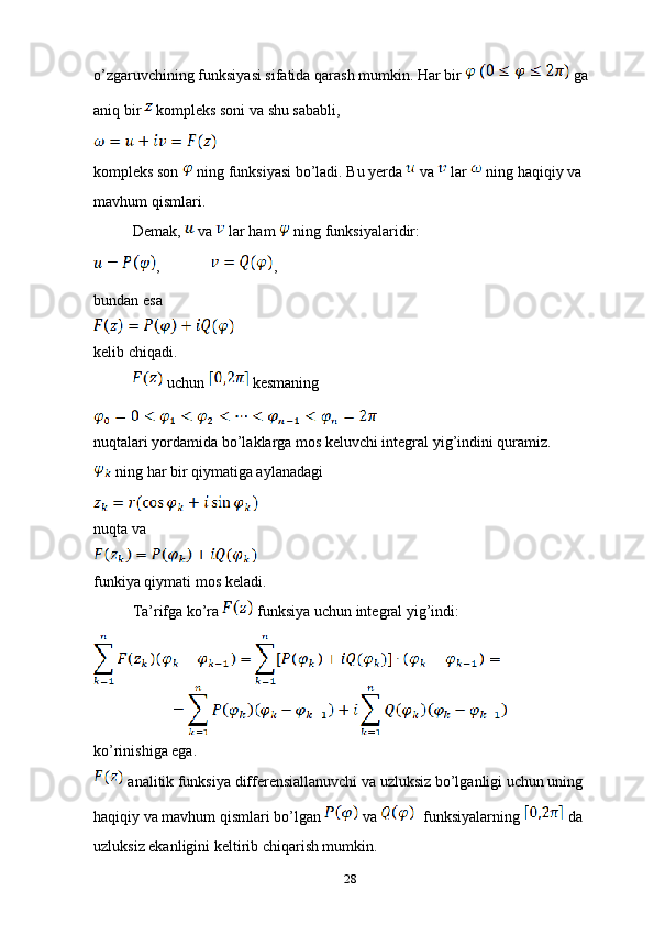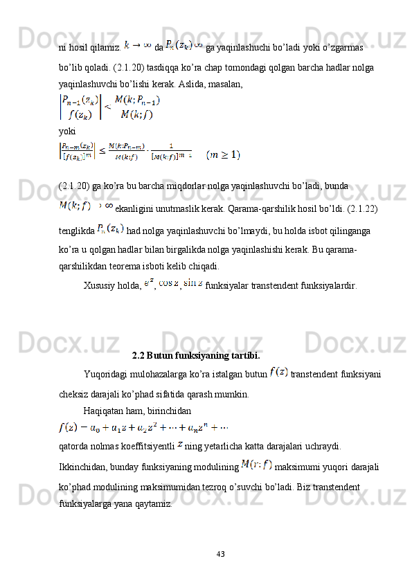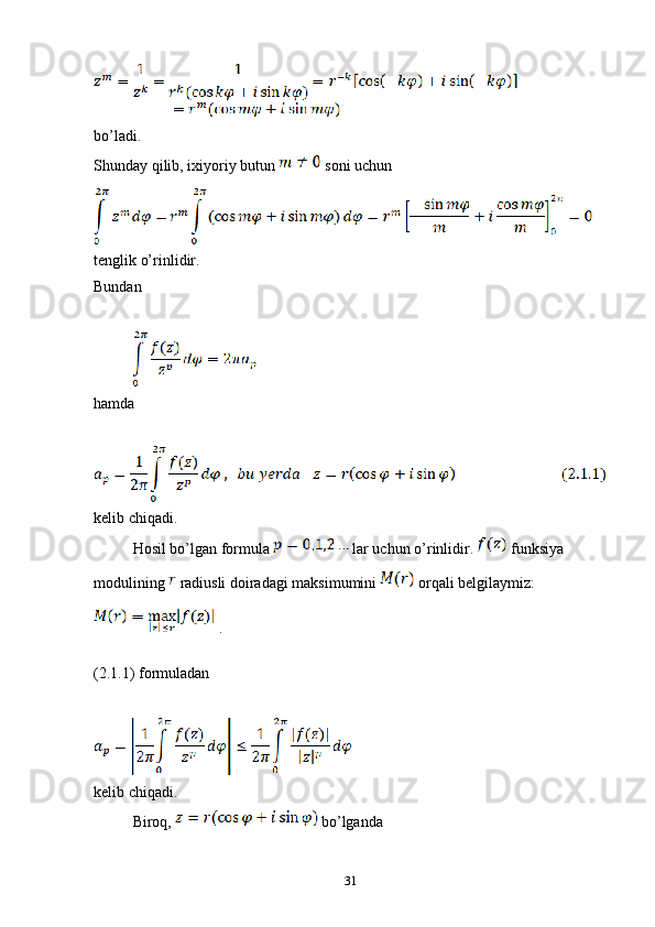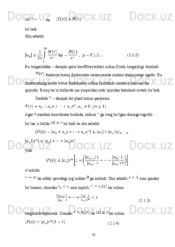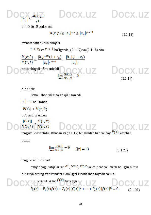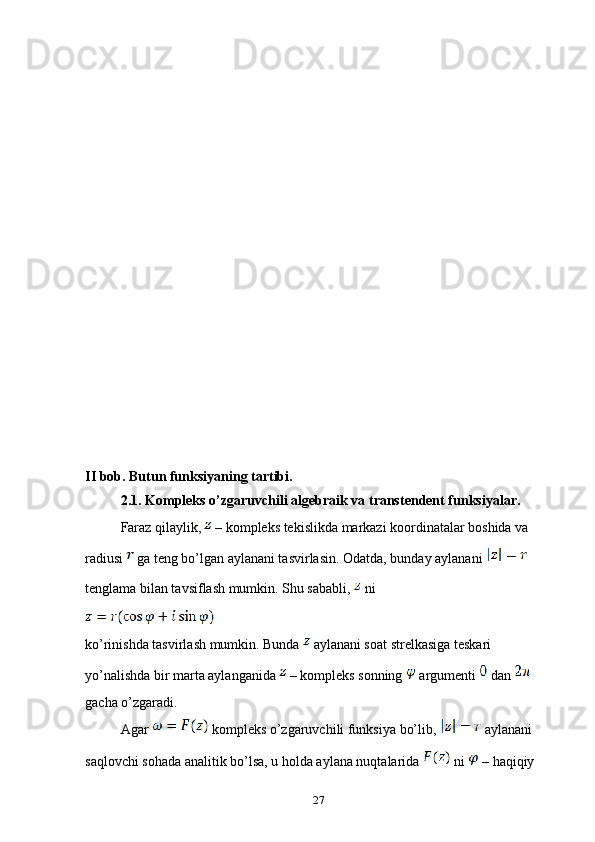 2.1 Kompleks o’zgaruvchili algebraik va transtsendent funksiyalar
