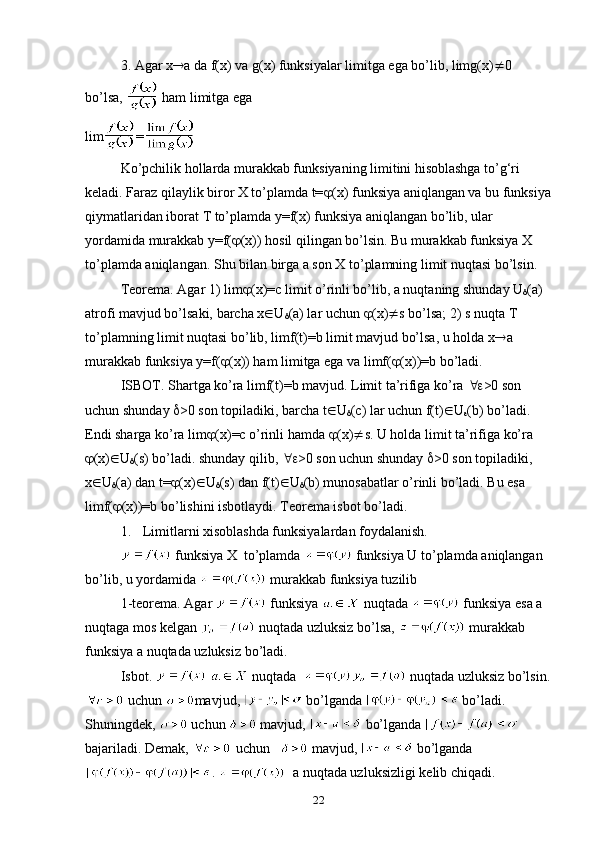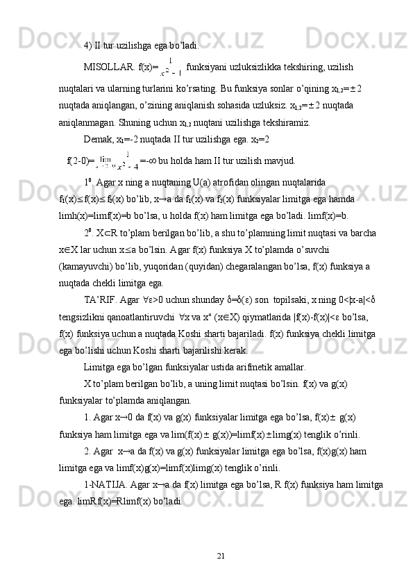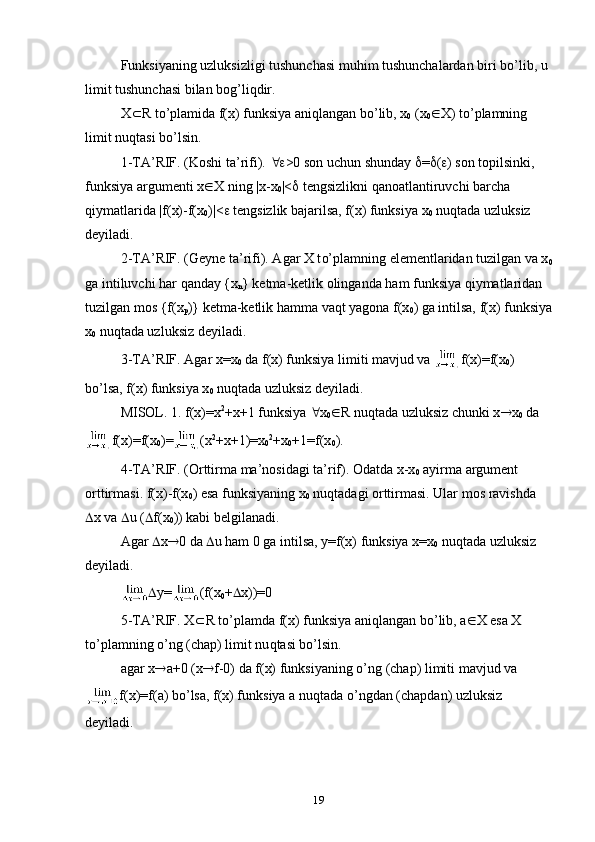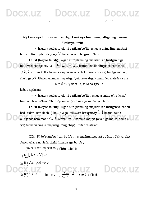 1.2. Funksiya limiti va uzluksizligi. Funksiya limiti mavjudligining mezoni.