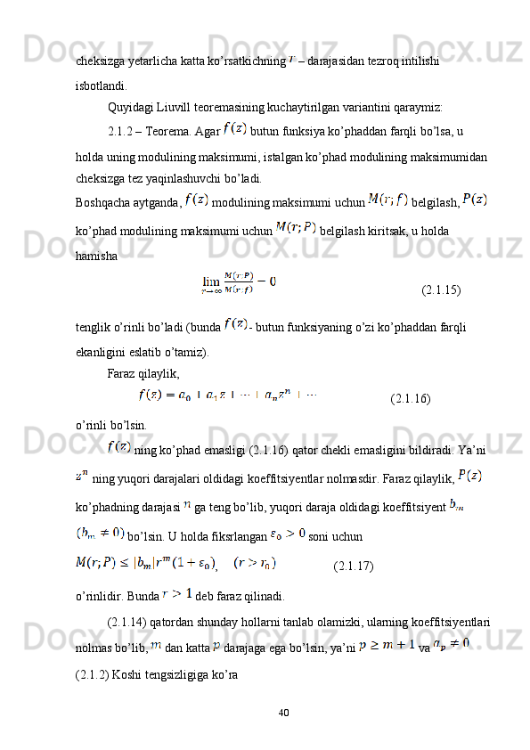 II Bob. Butun funksiyaning tartibi.