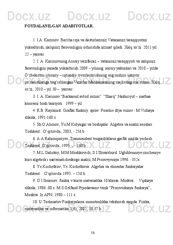 FOYDALANILGAN ADABIYOTLAR