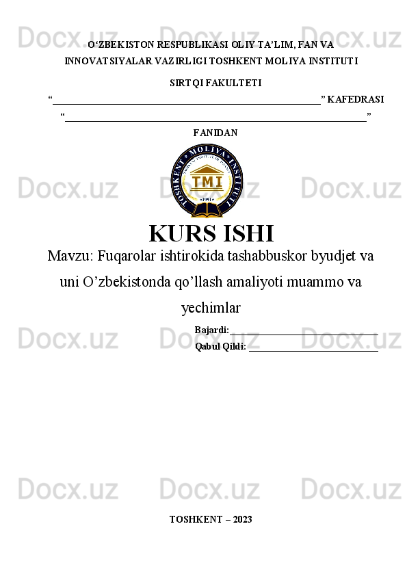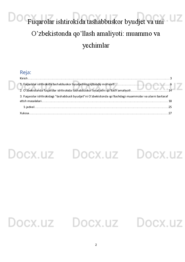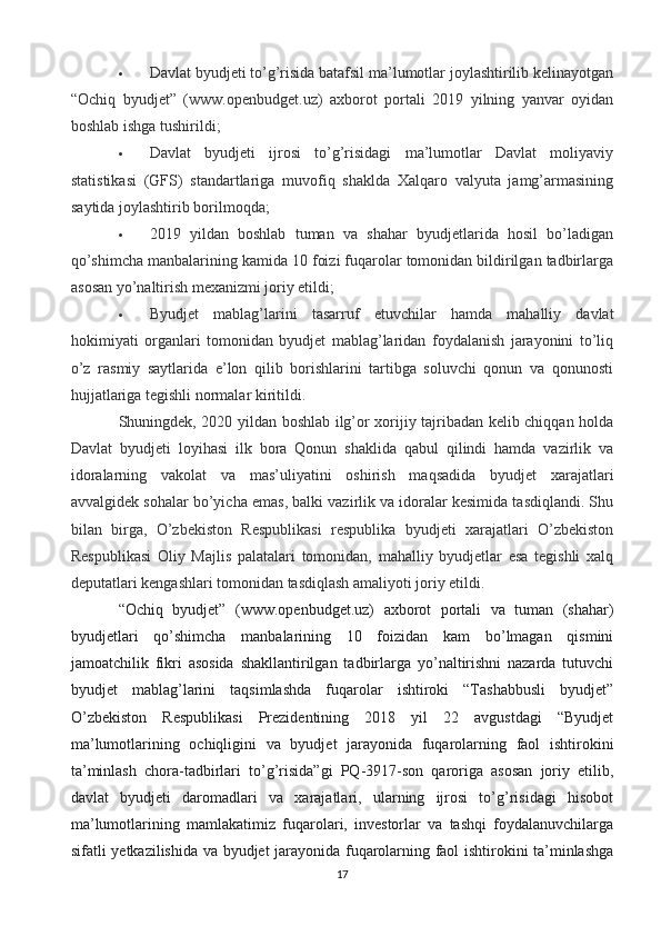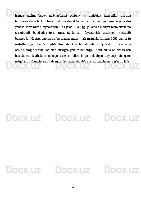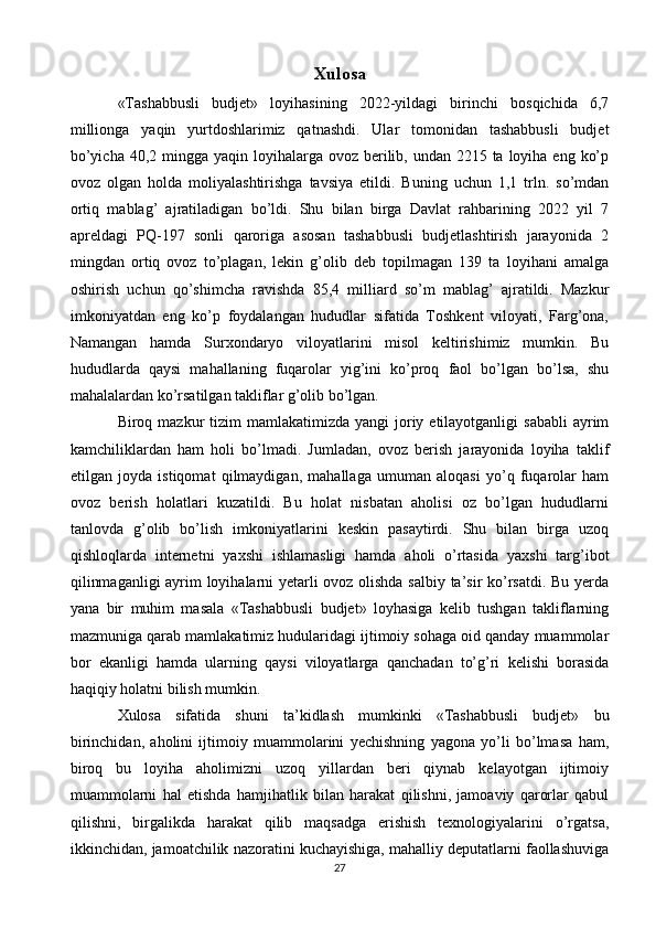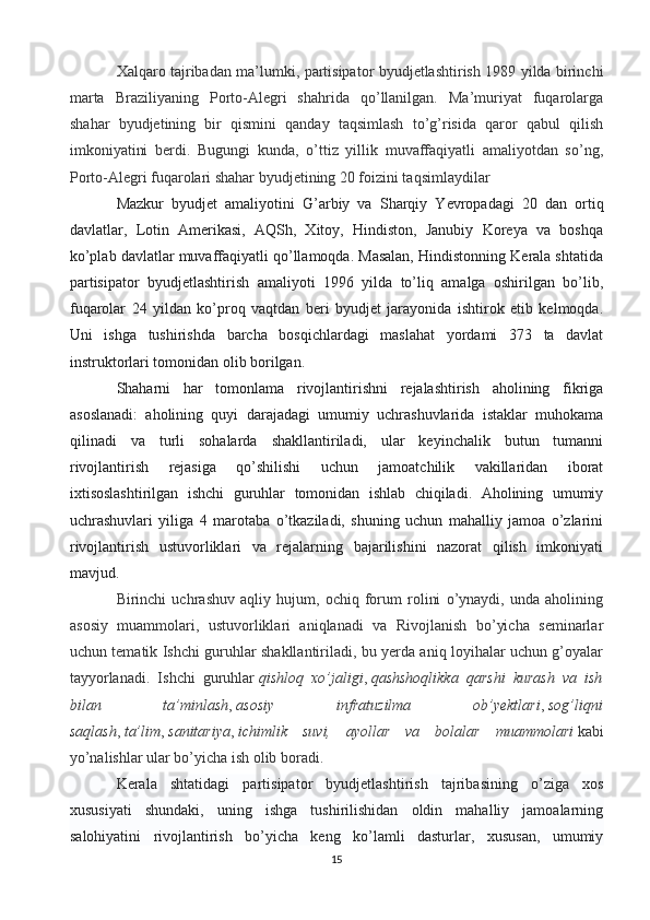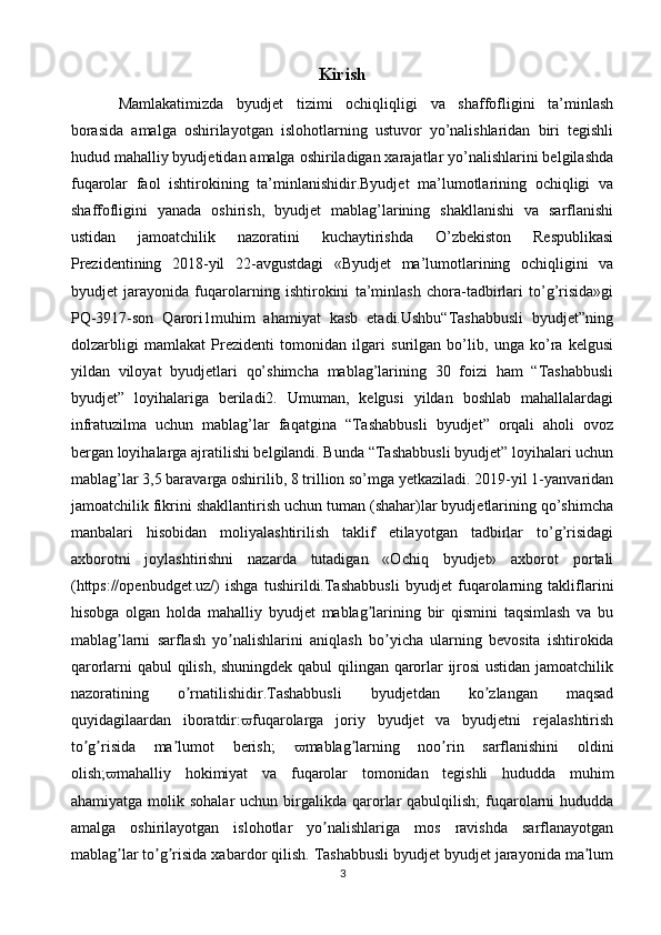 Fuqarolar ishtirokida tashabbuskor byudjet va uni O’zbekistonda qo’llash amaliyoti - muammo va yechimlar