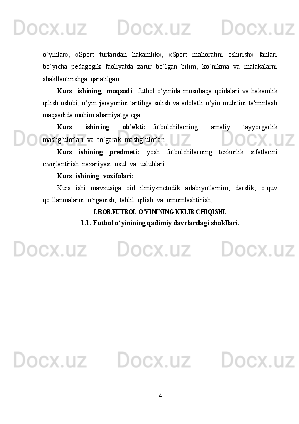 Kurs ishining ob’ekti: futbolchilarning amaliy tayyorgarlik mashg‘ulotlari va to`garak mashg`ulotlari.