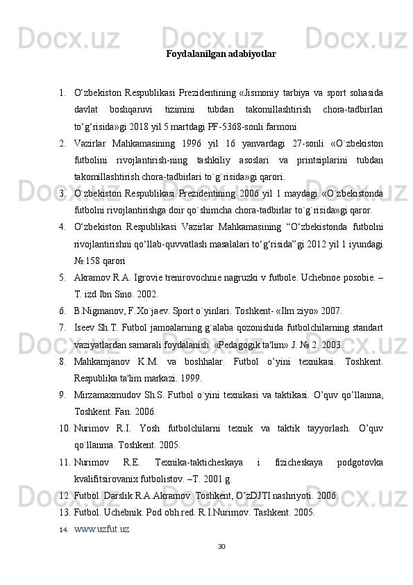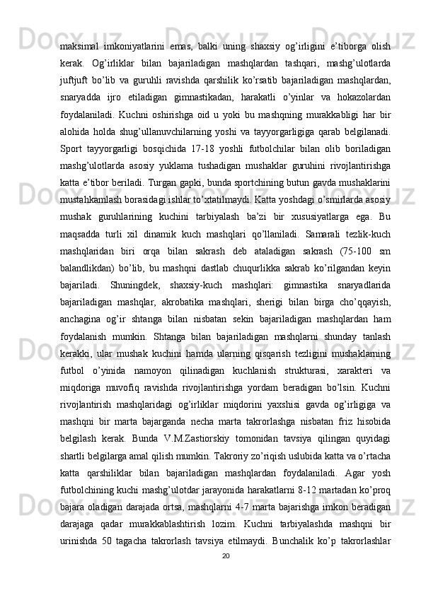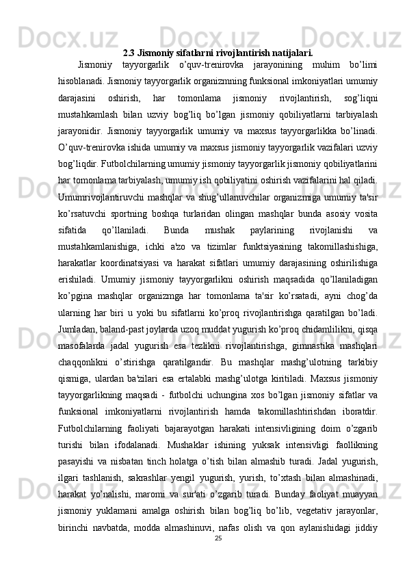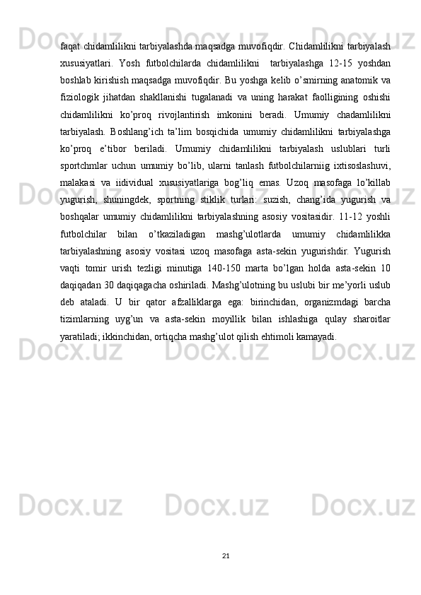 Futbolchilarning jimoniy qobiliyatlarini rivojlantirishda chidamkorlik sifatini ahamiyati