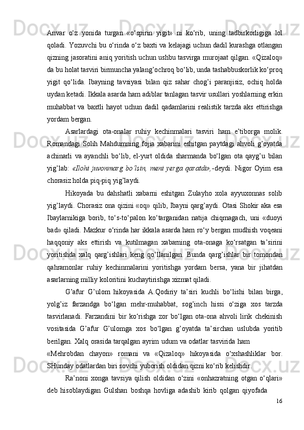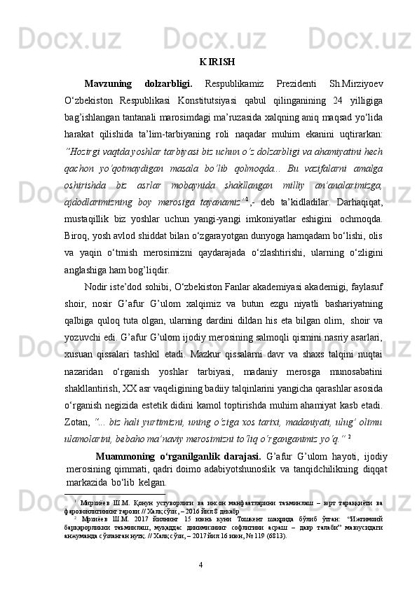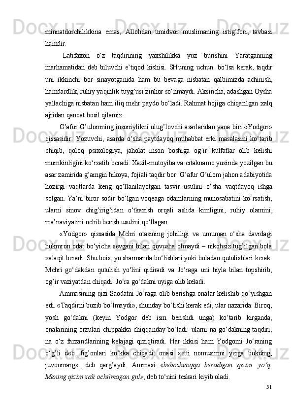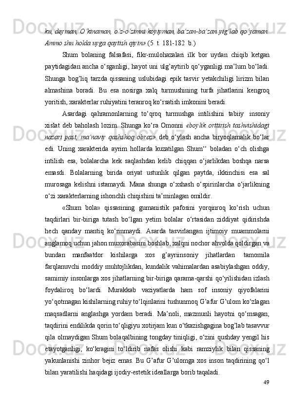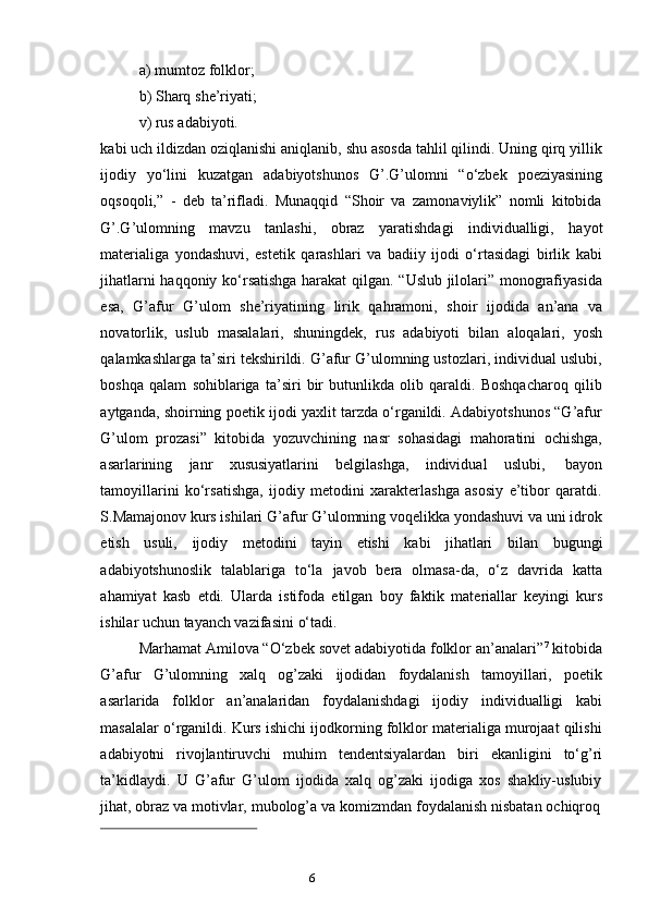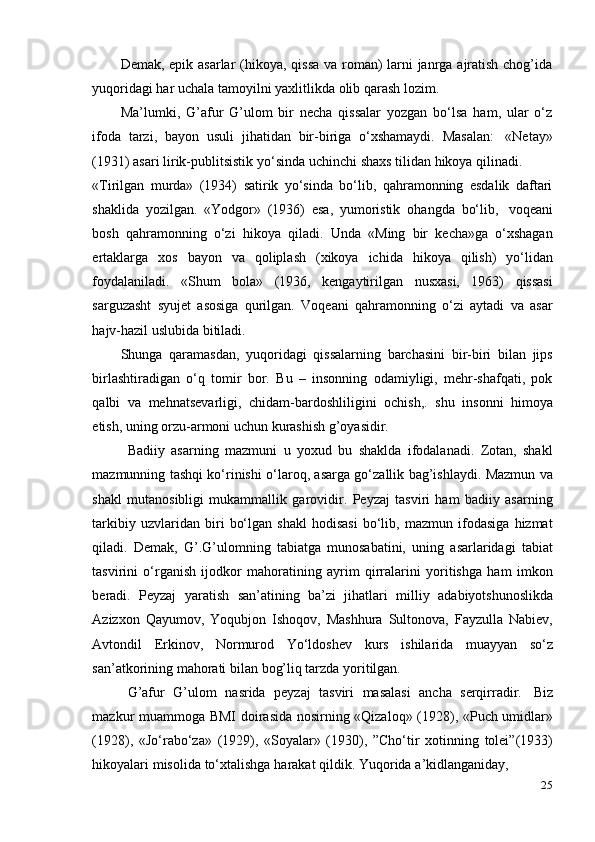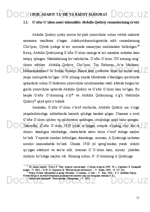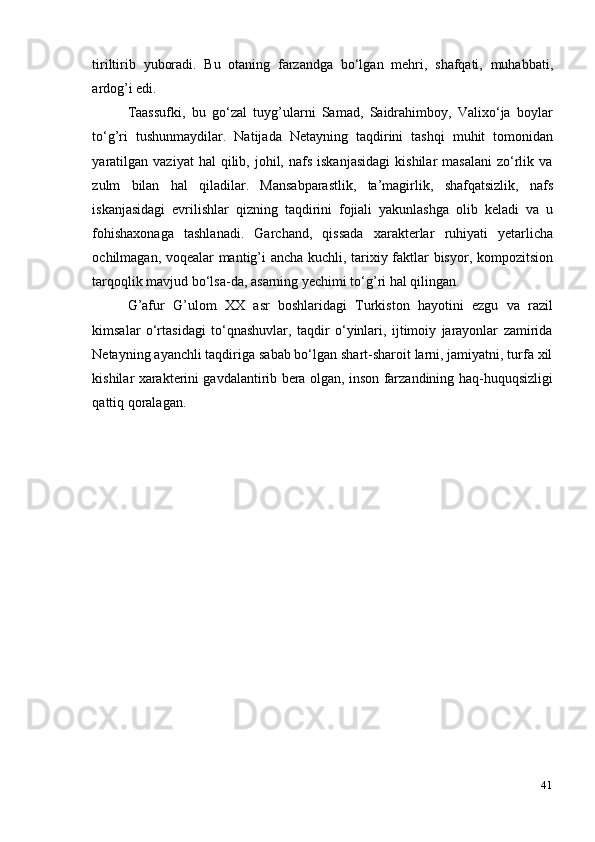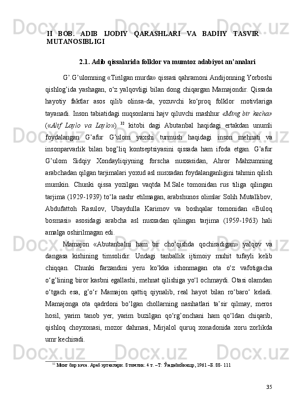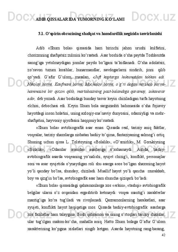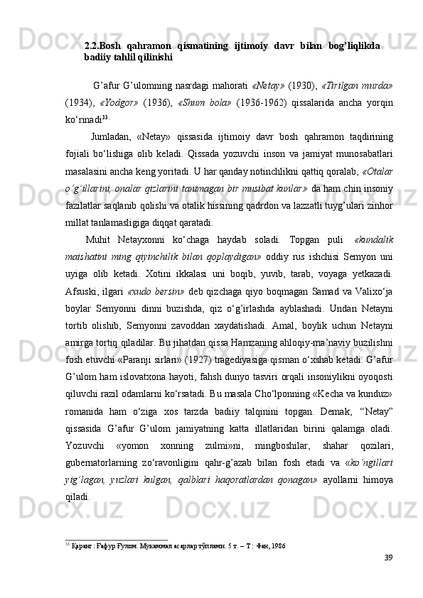 G‘afur G‘ulom asarlarida davr va shaxs talqini