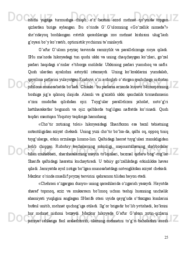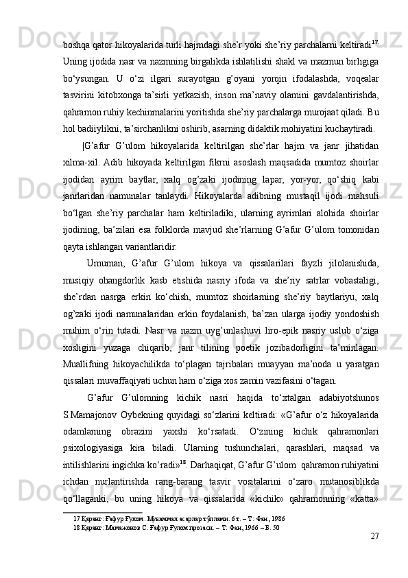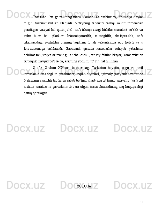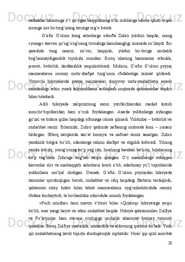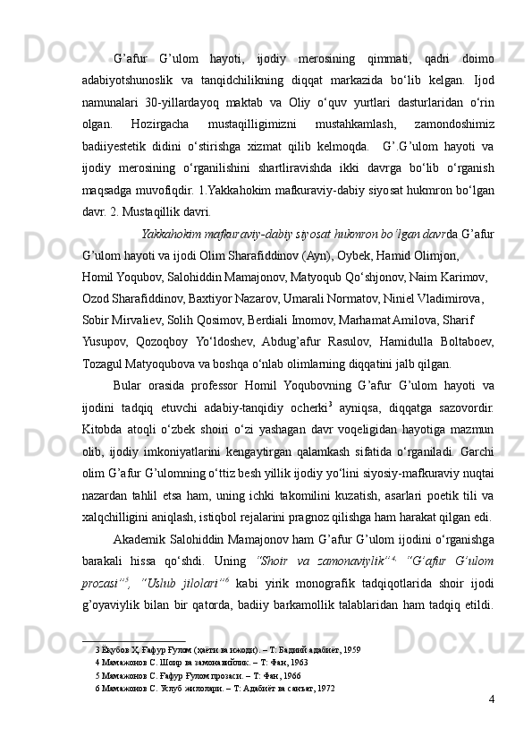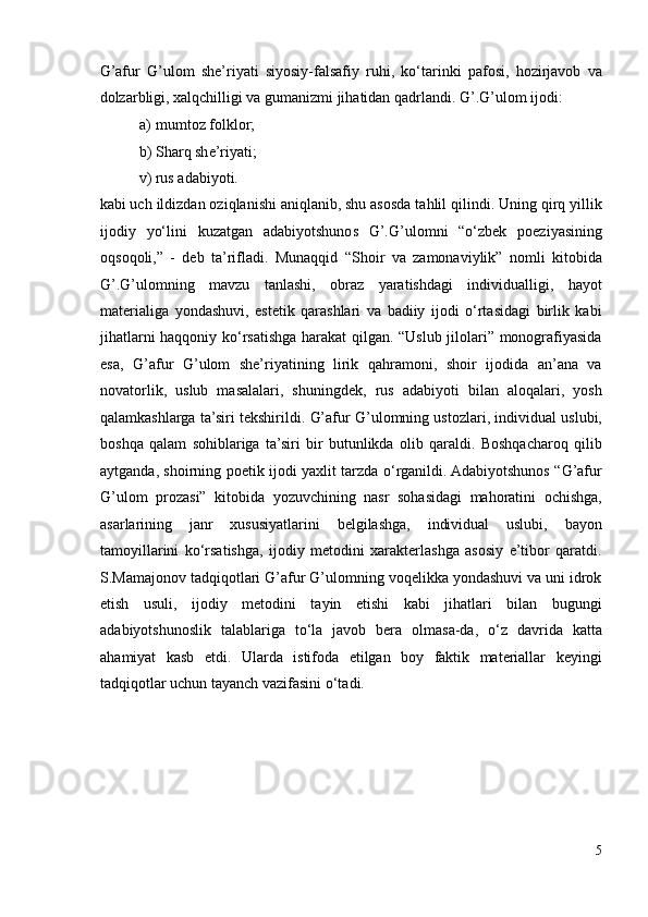 G’AFUR G’ULOM IJODIY QARASHLARI VA BADIIY TASVIR