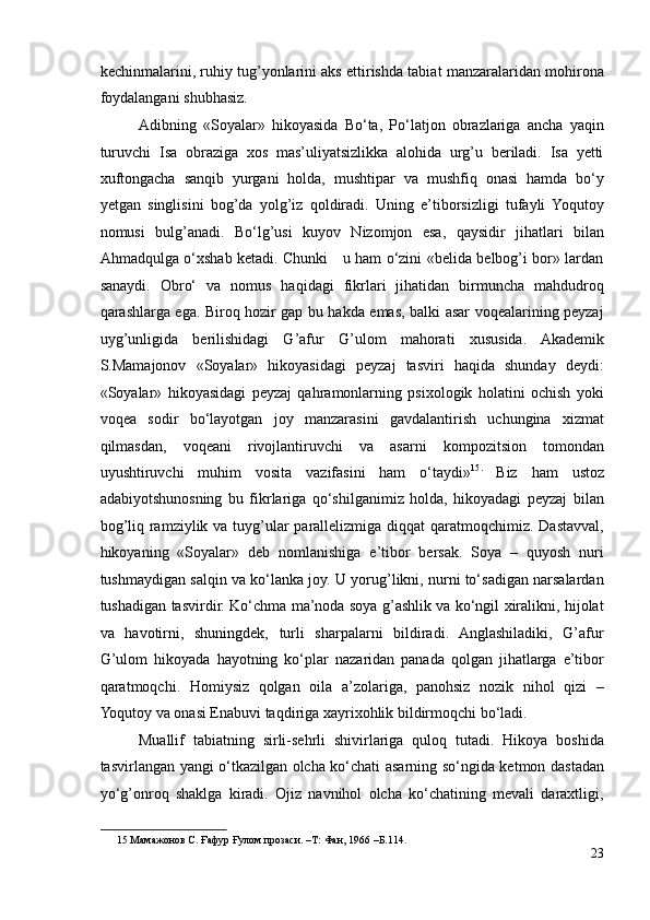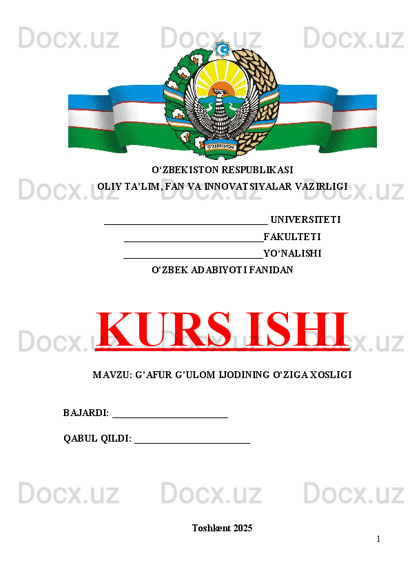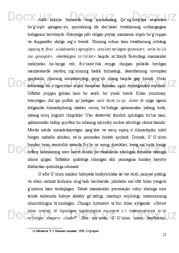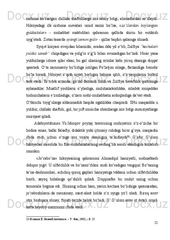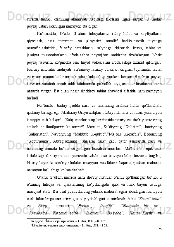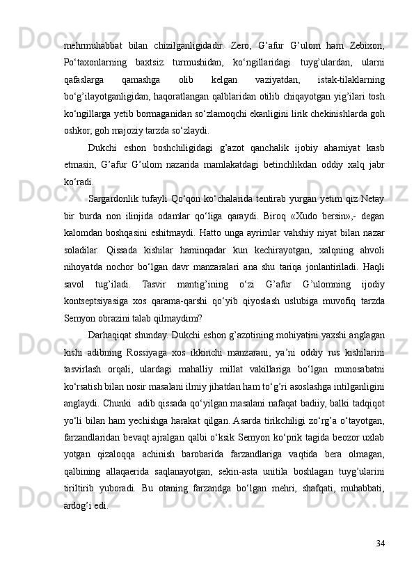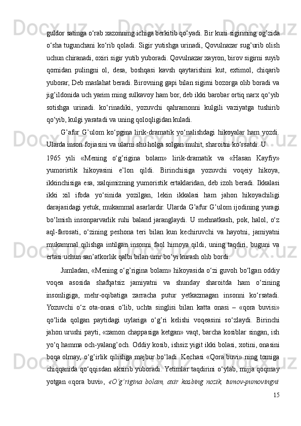 G’AFUR G’ULOM IJODIY QARASHLARI VA BADIIY TASVIR