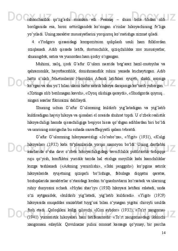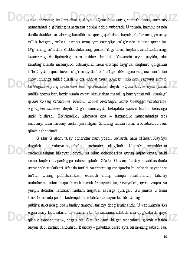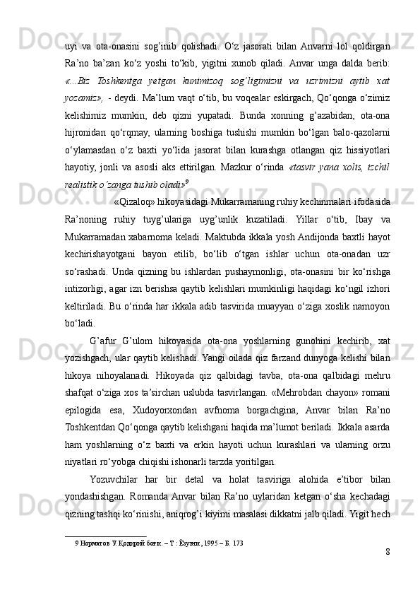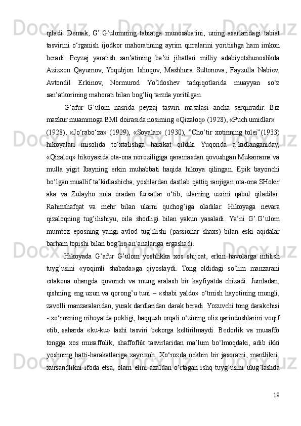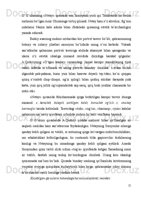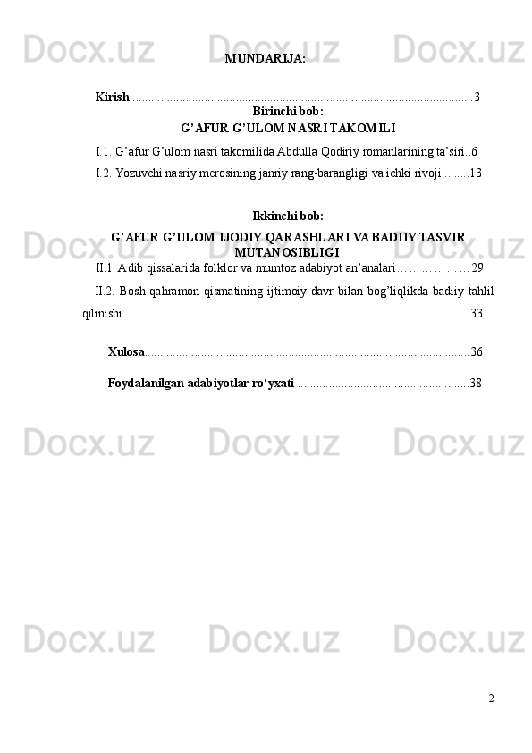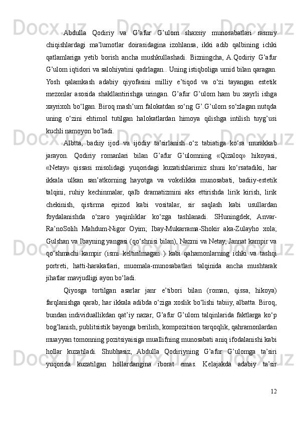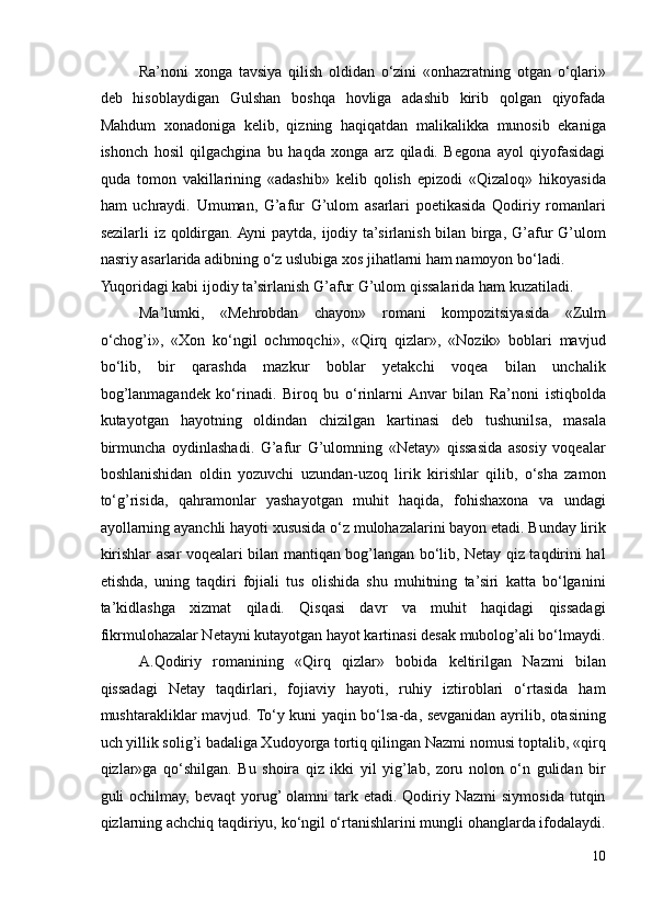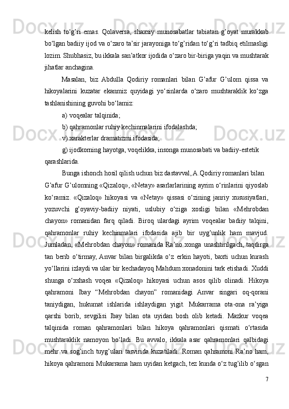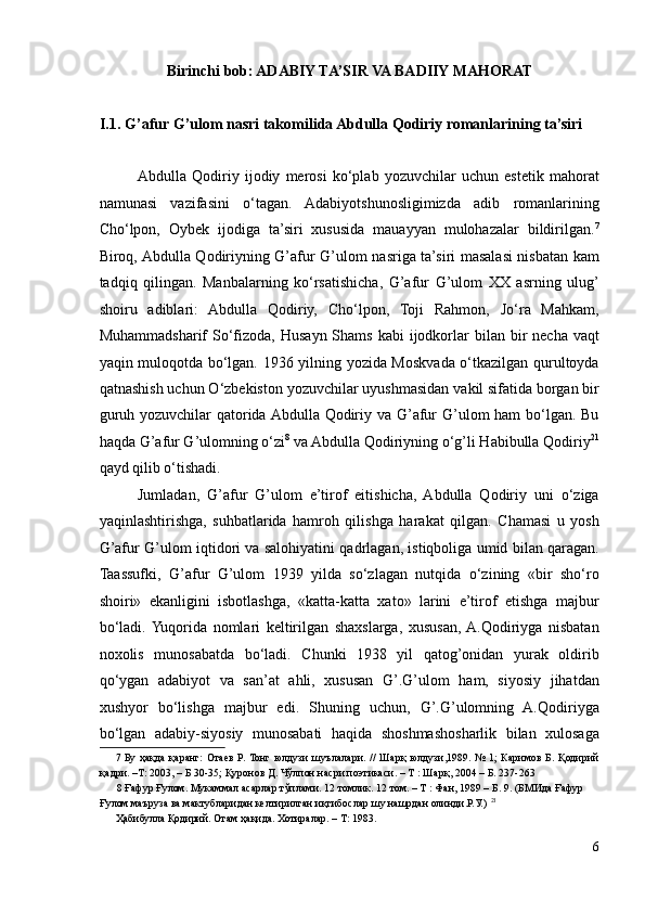 I.1. G’afur G’ulom nasri takomilida Abdulla Qodiriy romanlarining ta’siri..6