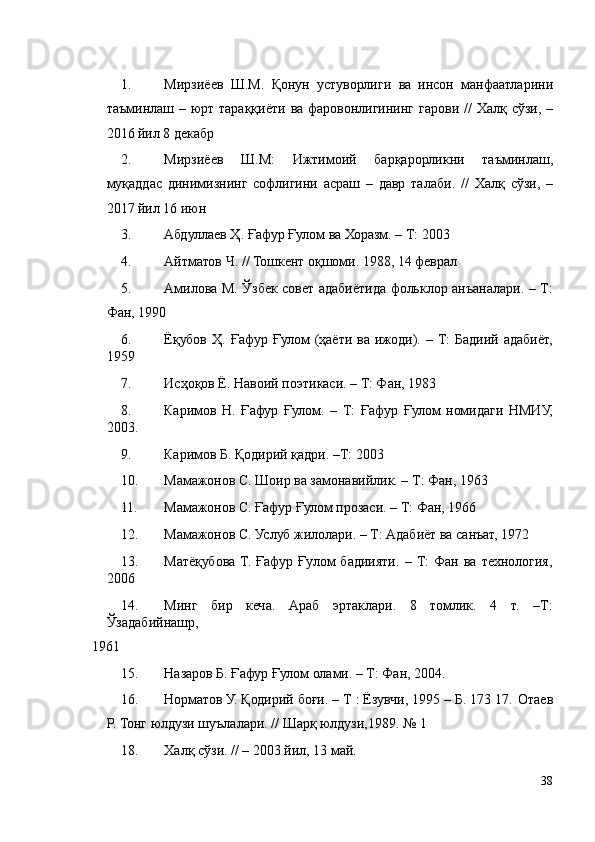 Foydalanilgan adabiyotlar ro‘yxati .......................................................38
