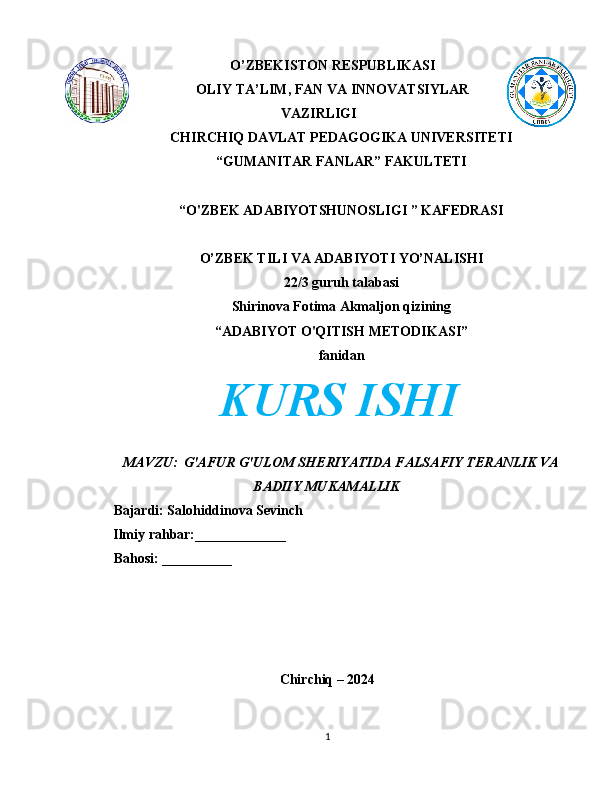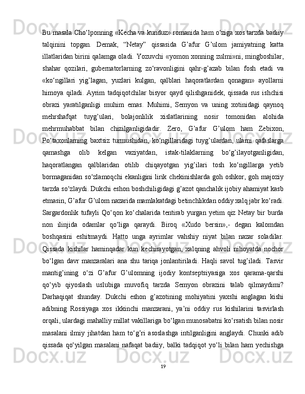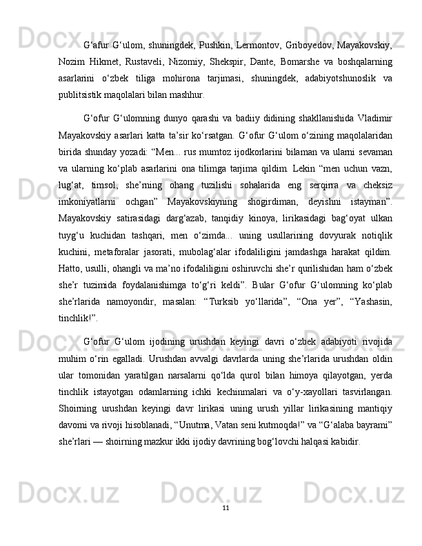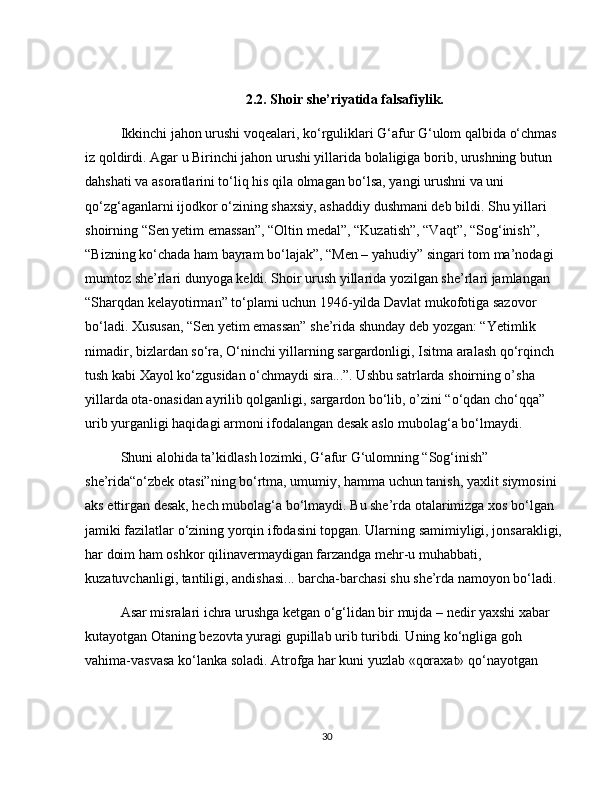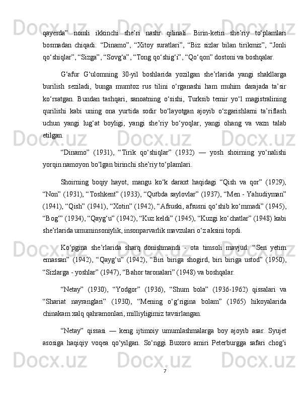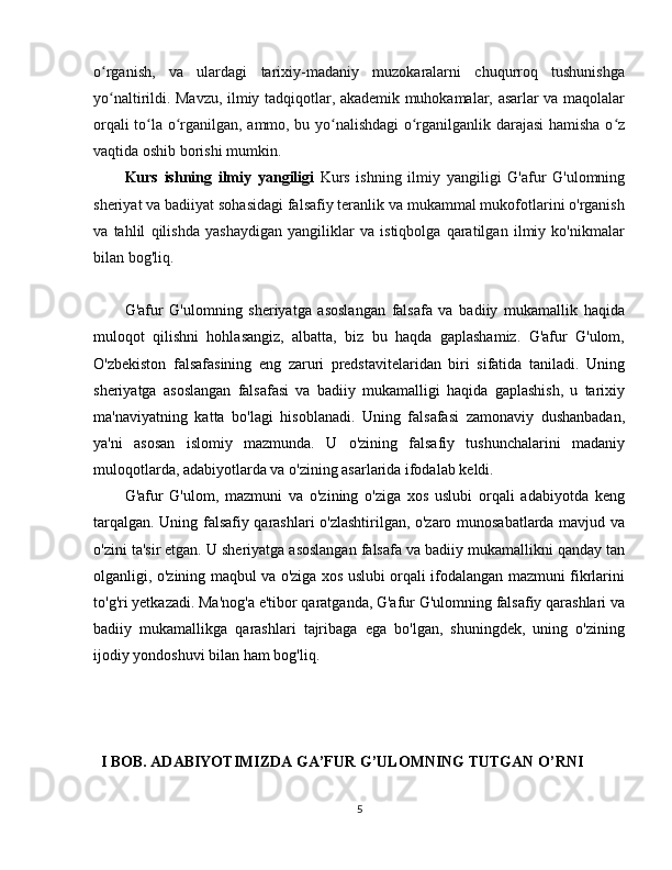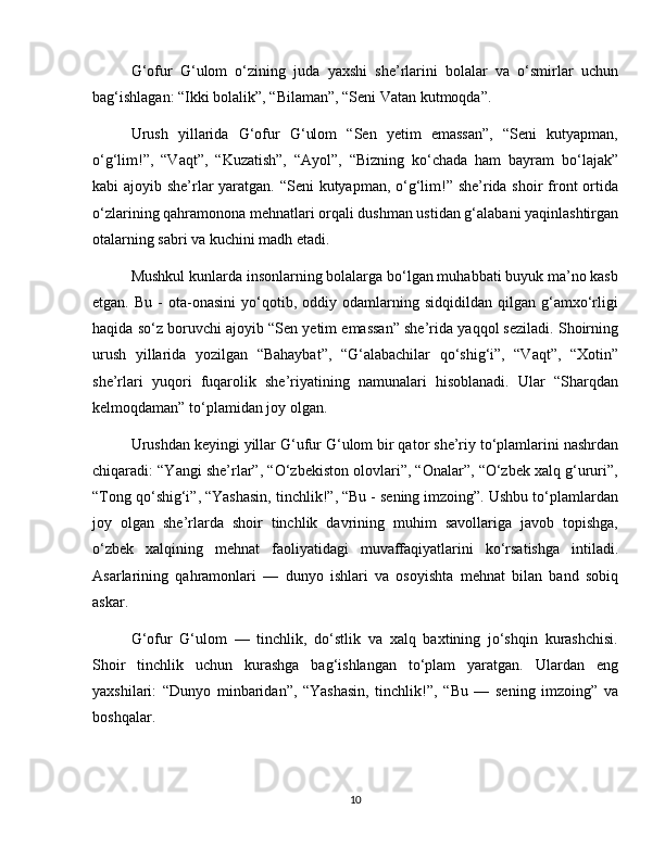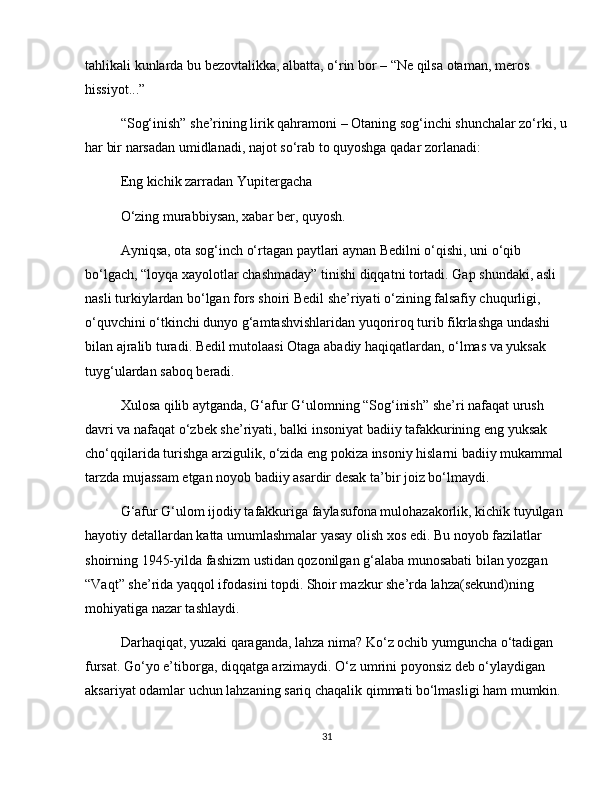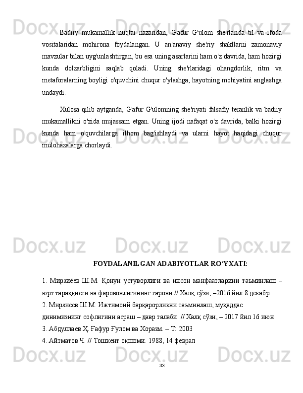 G'afur G'ulom sheriyatida falsafiy teranlik va badiiy mukammallik