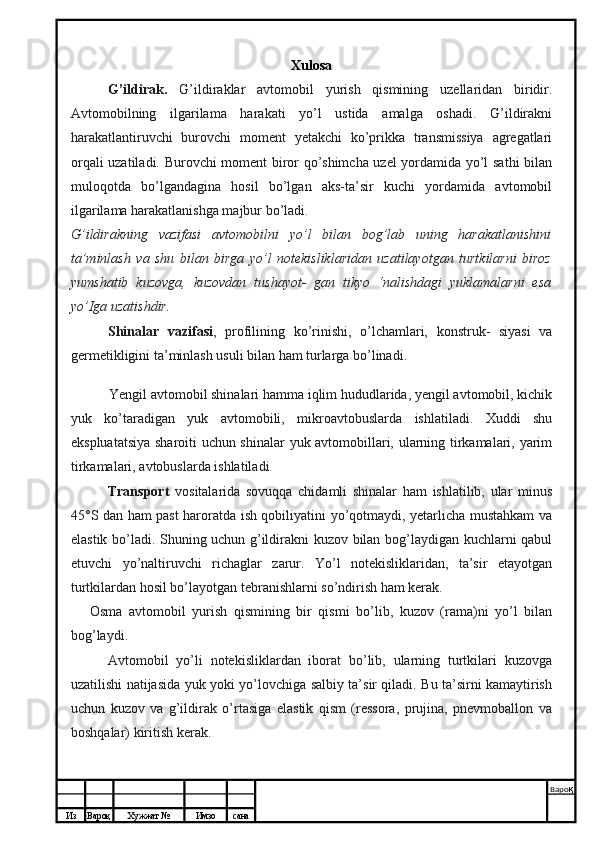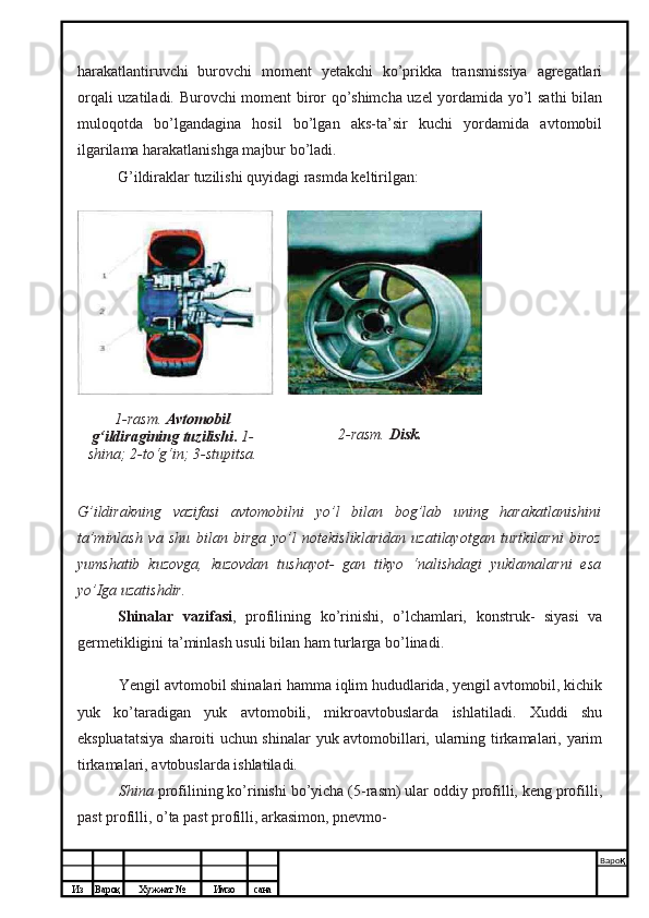 G’ildirak va shinalar