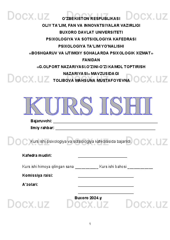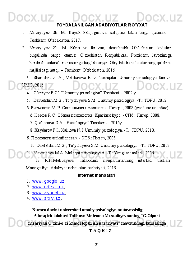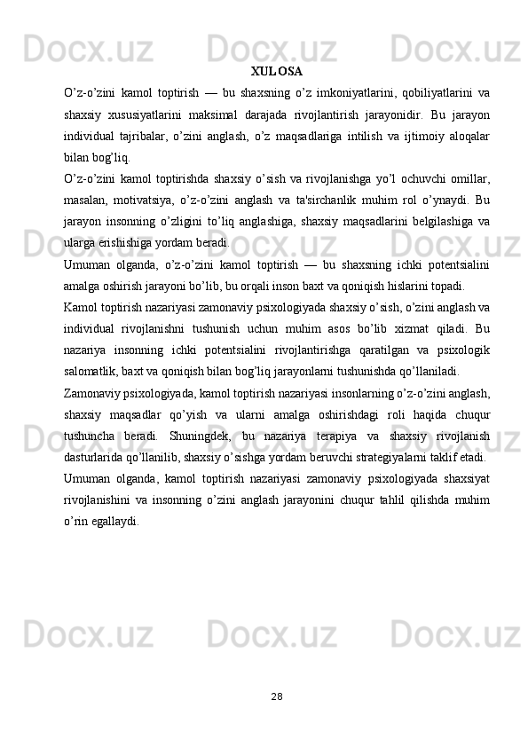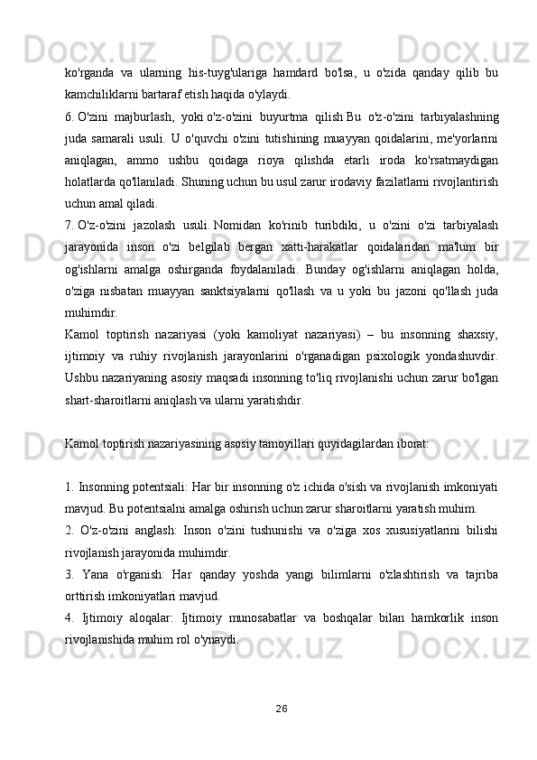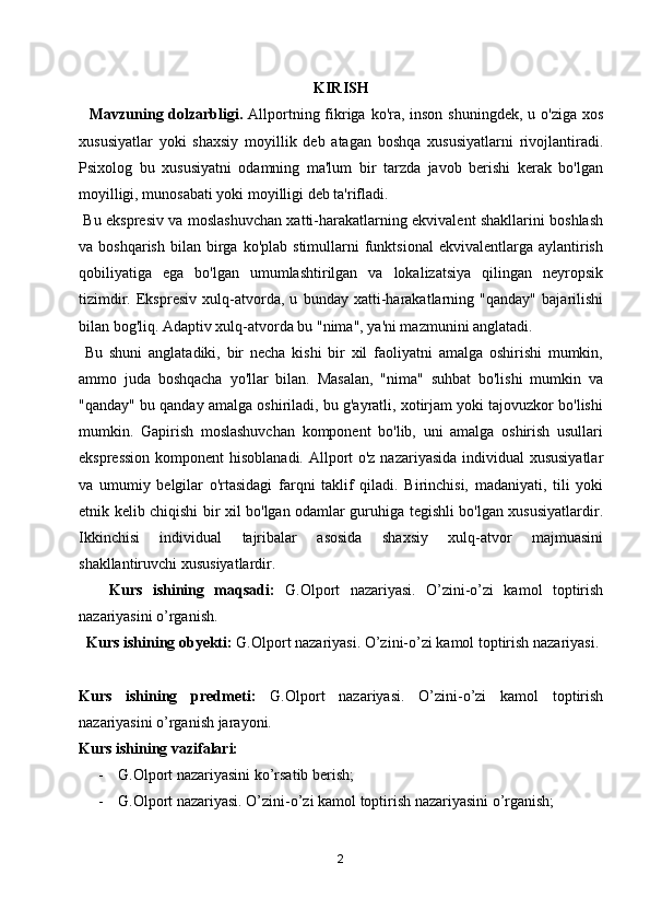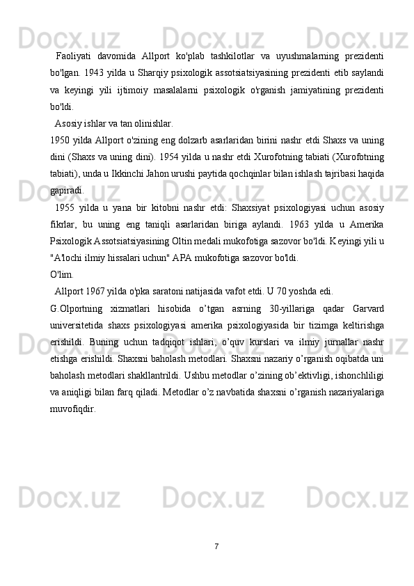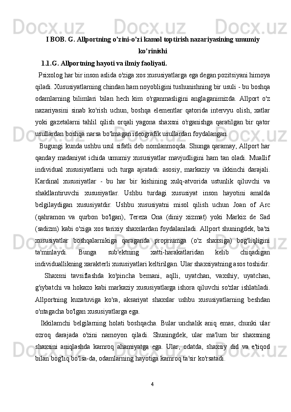 G. Olport nazariyasi. O’zini-o’zi kamol toptirish nazariyasi