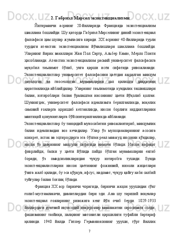Габреэл Марселнинг экзистенциал фалсафаси