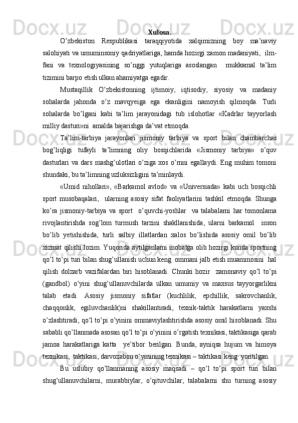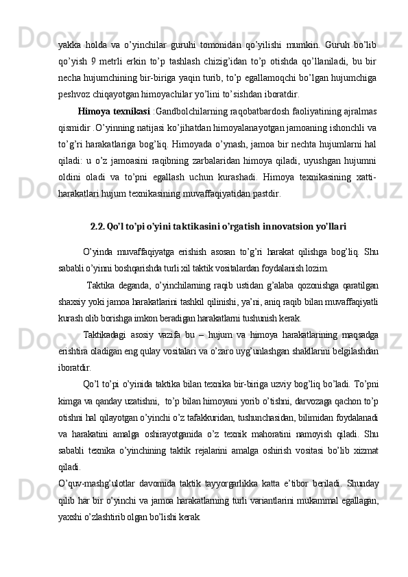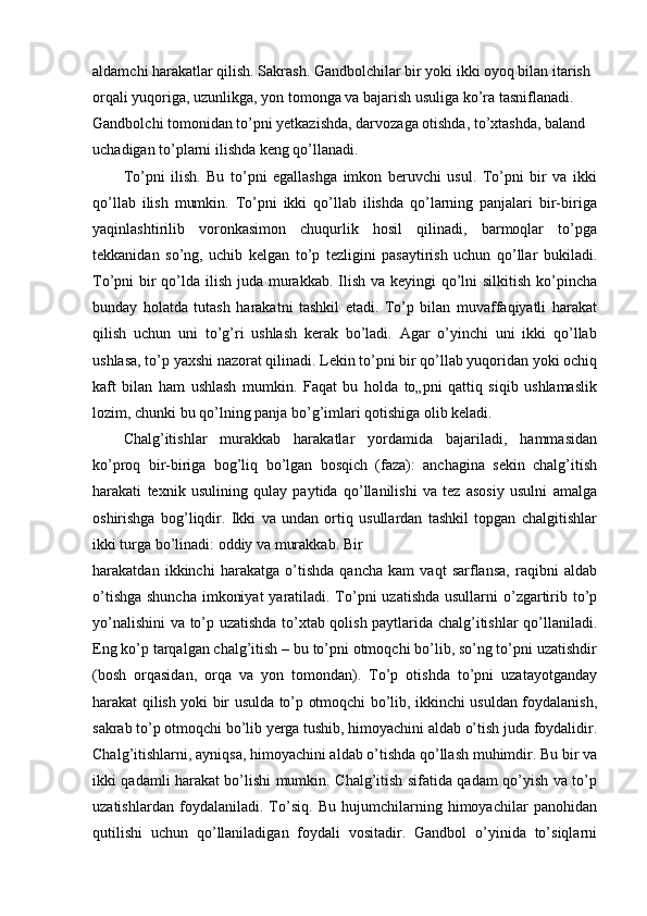 Gandbolda texnik – taktik tayyorgarlikning o’ziga xos xususiyatlari