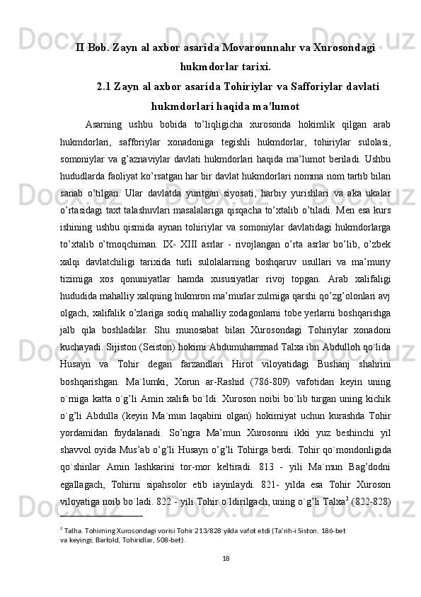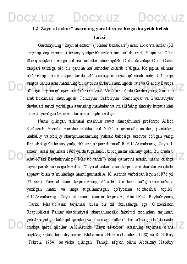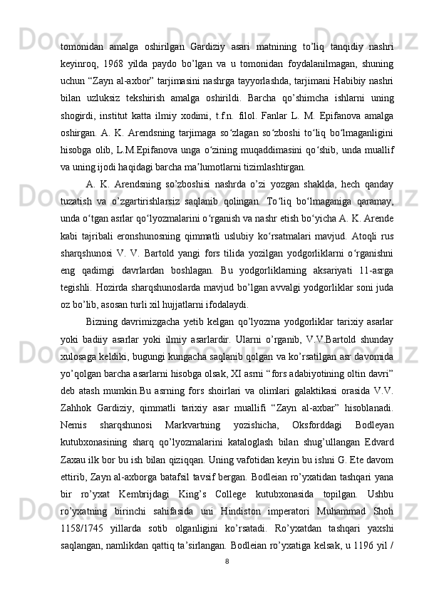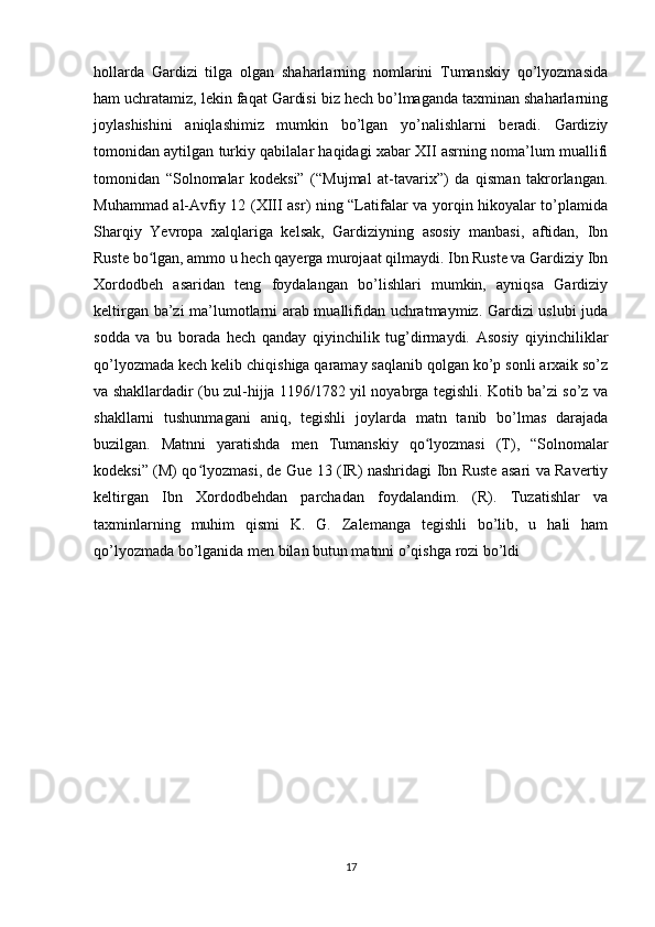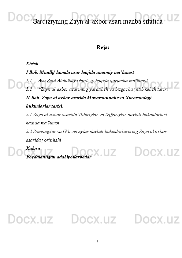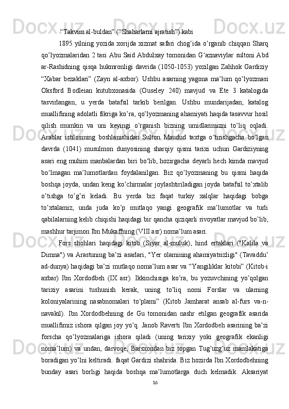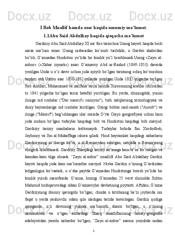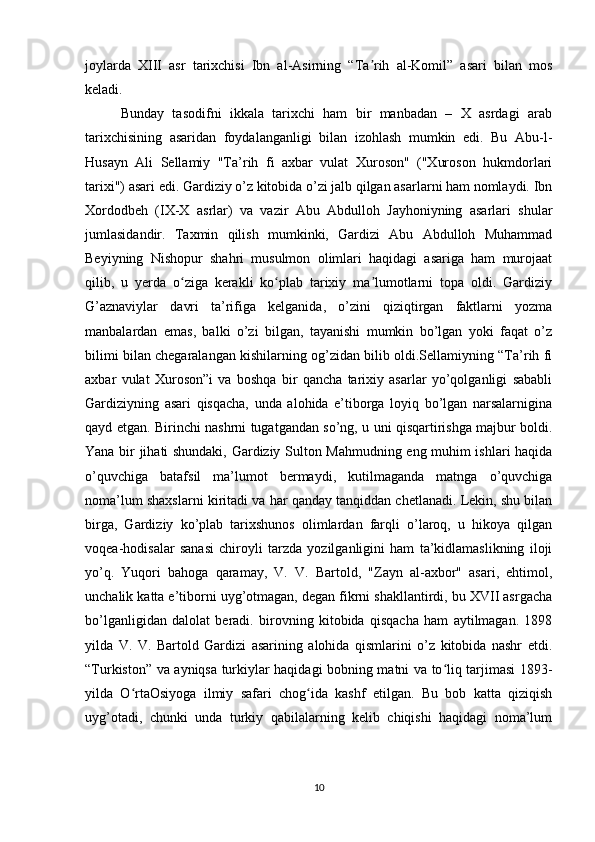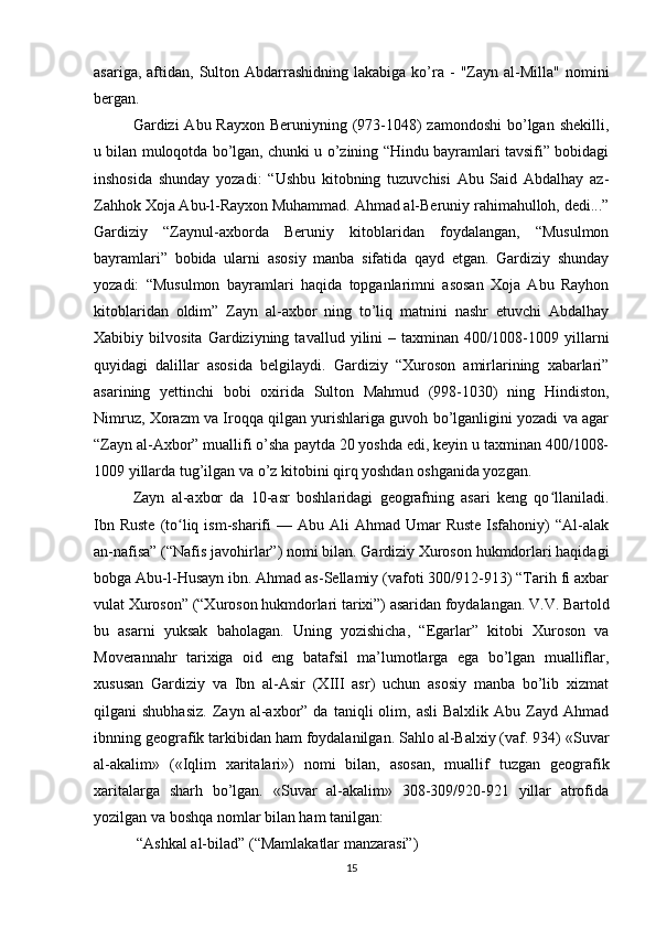 Gardiziyning Zayn al-axbor asari manba sifatida
