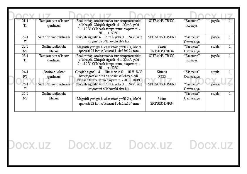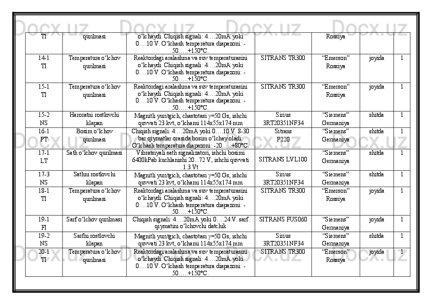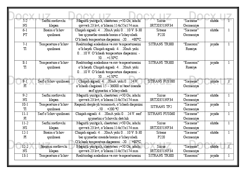 | Avtomatlashtirish vositalarining buyurtma spetsifikatsiyasi...................... | ||