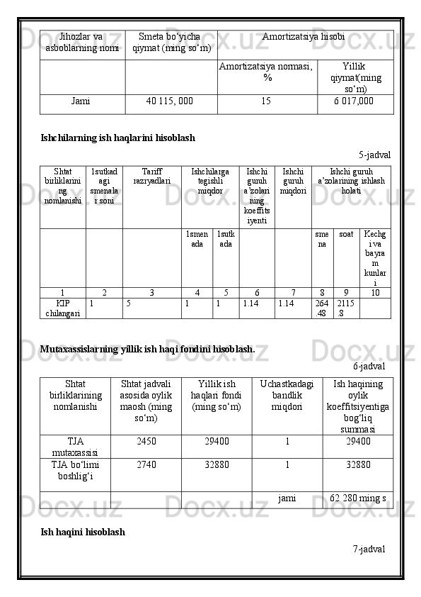 | Texnik – iqtisodiy xisob qismi.................................................................... | ||