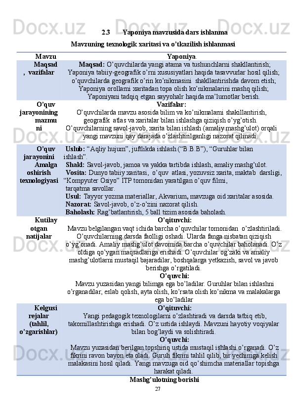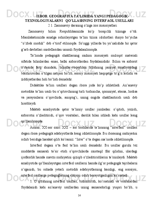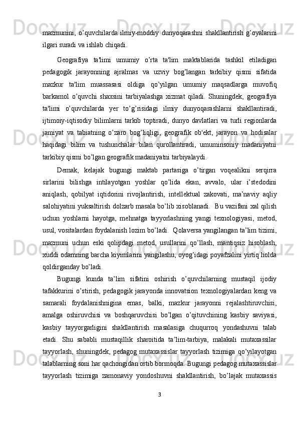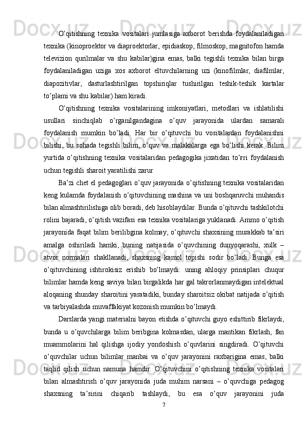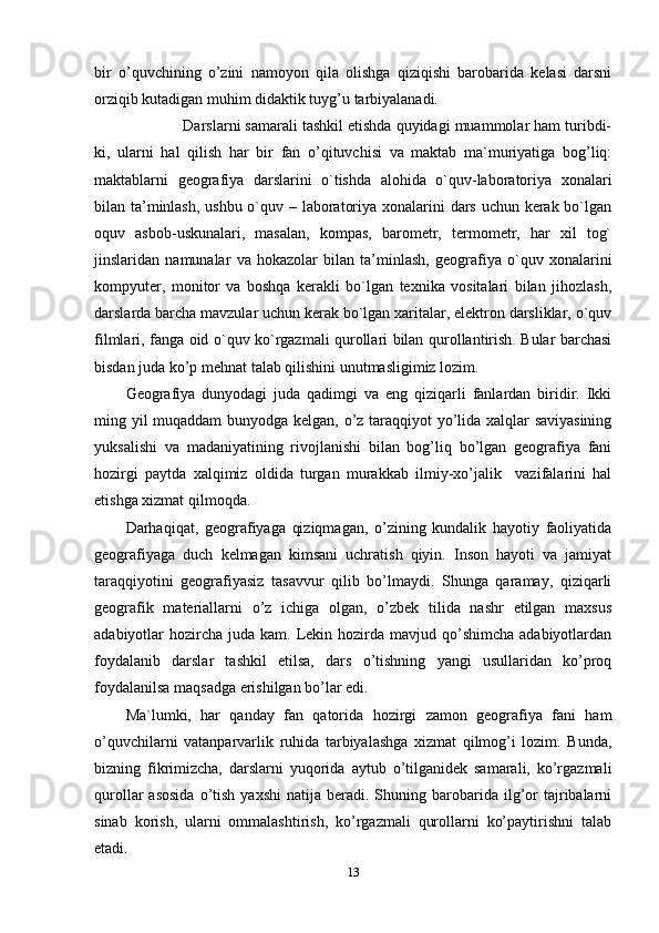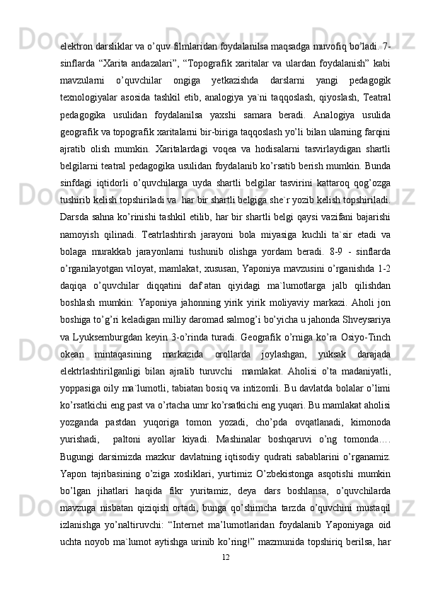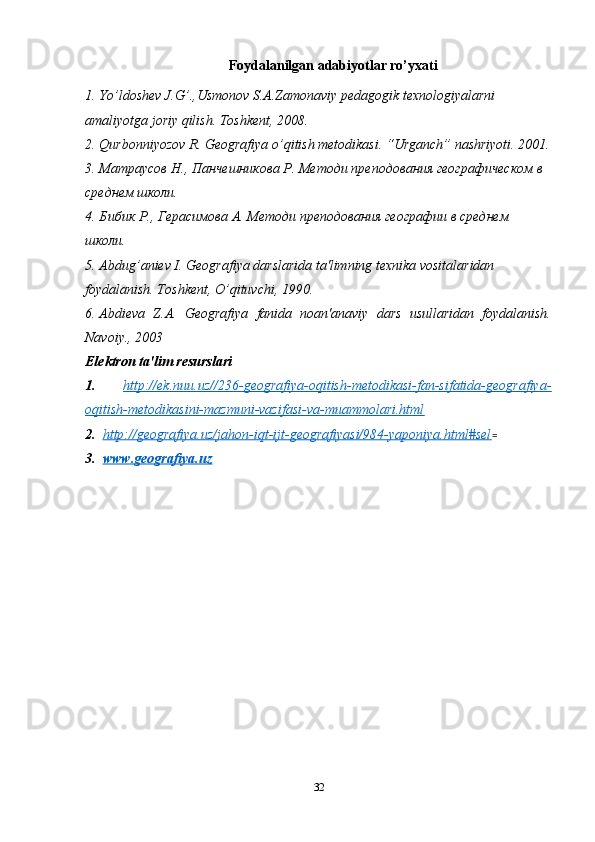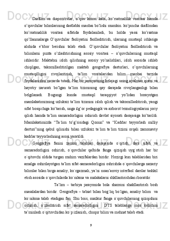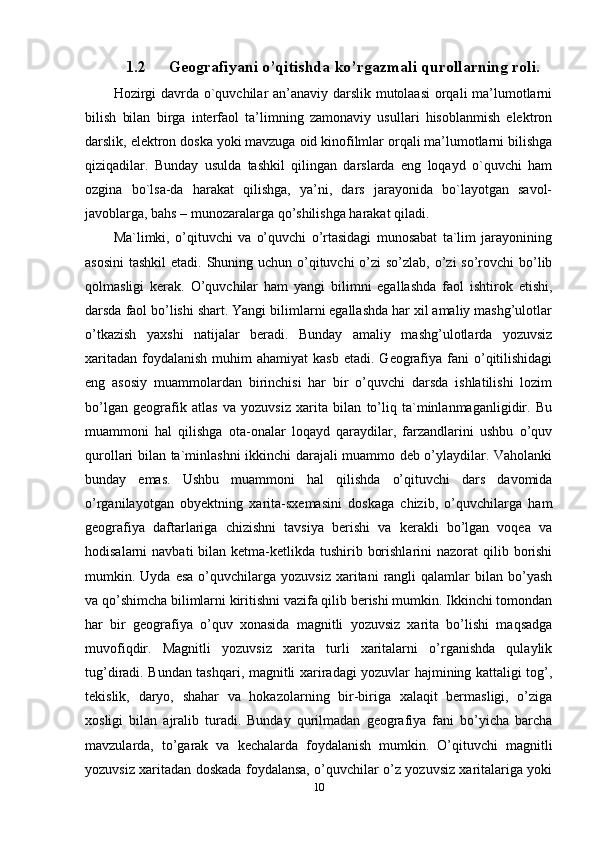 Geografiyani o’qitishda ko’rgazmali qurollardan foydalanish