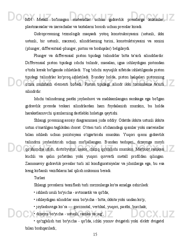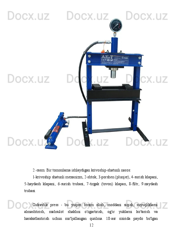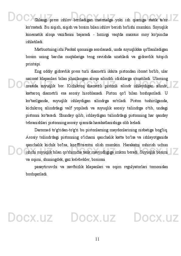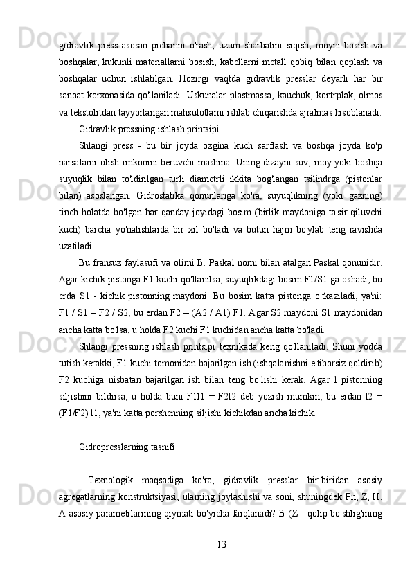 Gidravlik pressning ishlash printsipining tavsifi