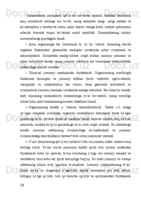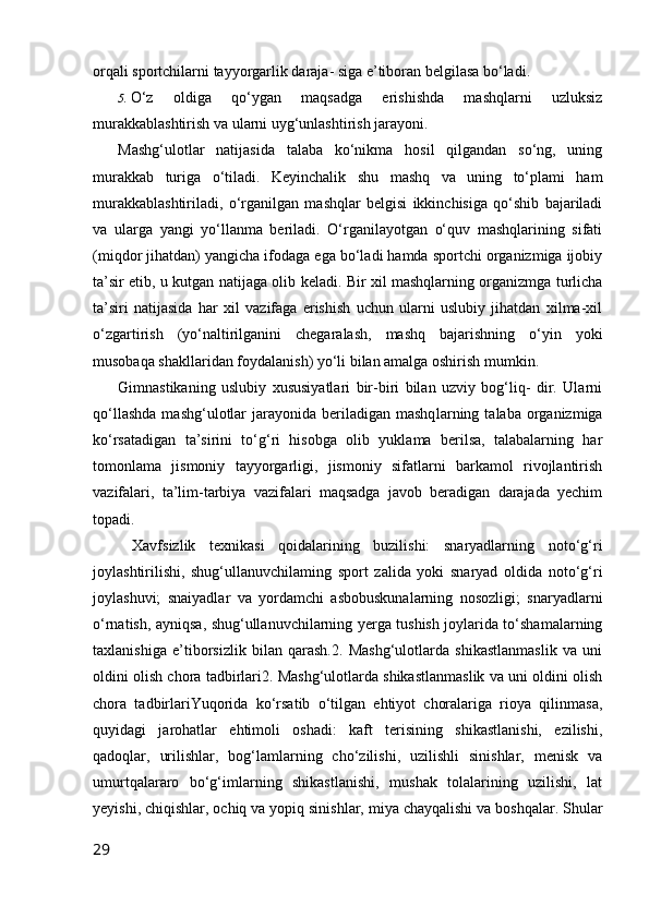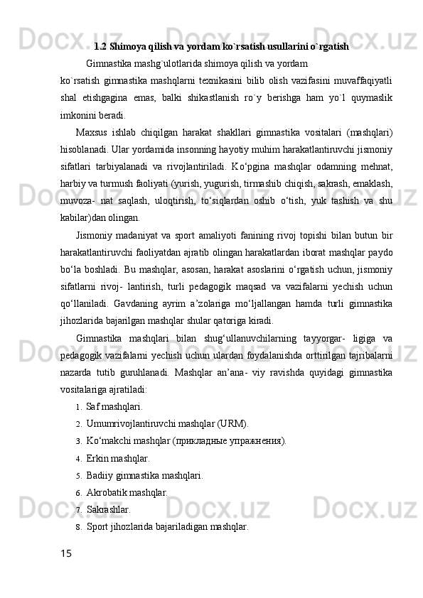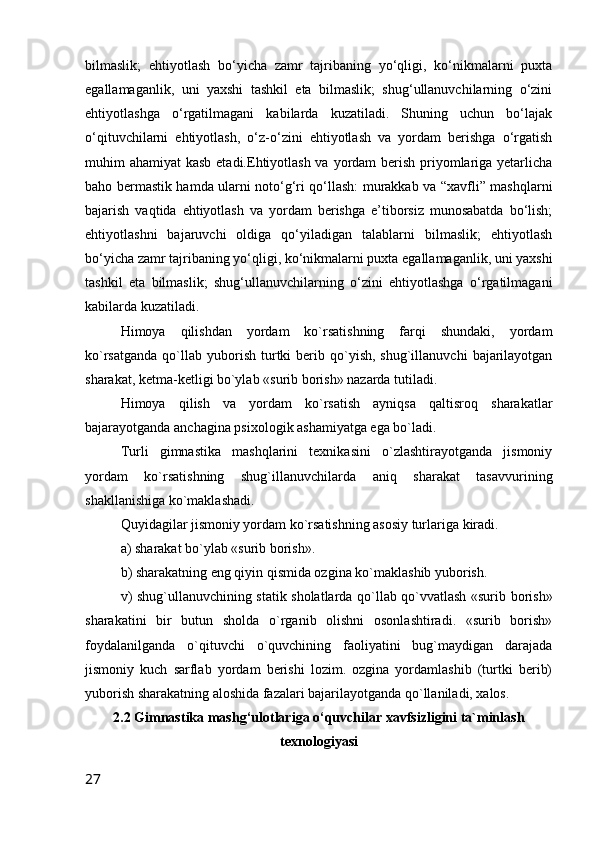 Gimnastikada muhofaza qilish va yordam ko‘rsatishni o‘rgatish hamda ularni takomillashtirish