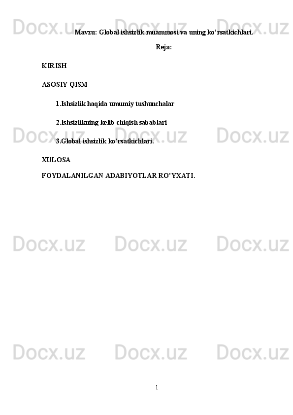 Global ishsizlik muammosi va uning ko’rsatkichlari