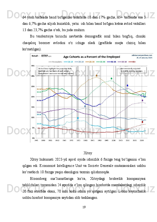 17 64 yosh toifasida band bo'lganlar tarkibida 10 dan 17% gacha, 65+ toifasida esa 3