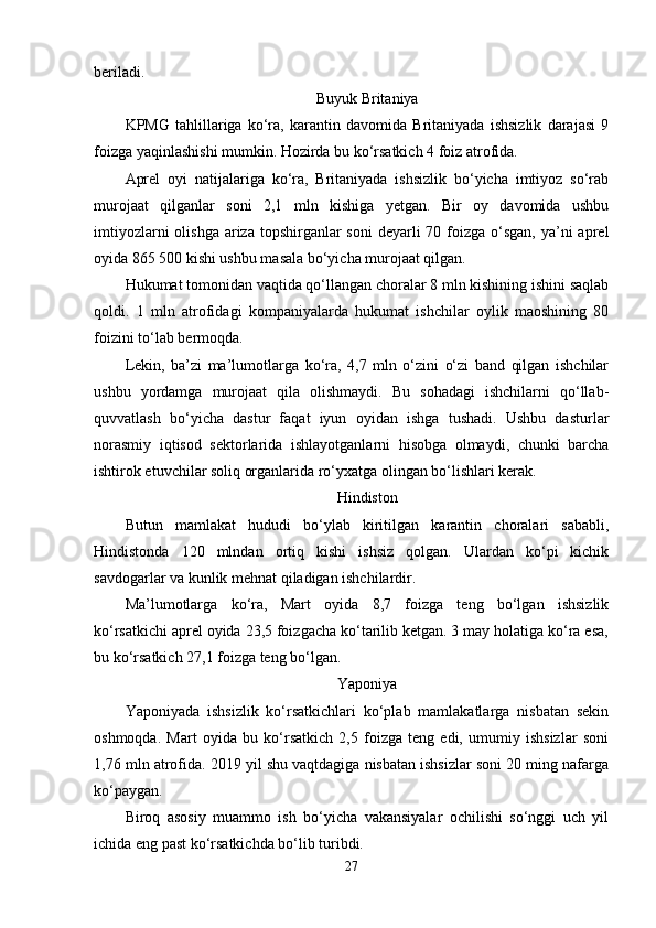 qoldi,   ishsizlik   bo‘yicha   ariza   topshirganlar   soni   39   mln   dan   ortgan.   Bu