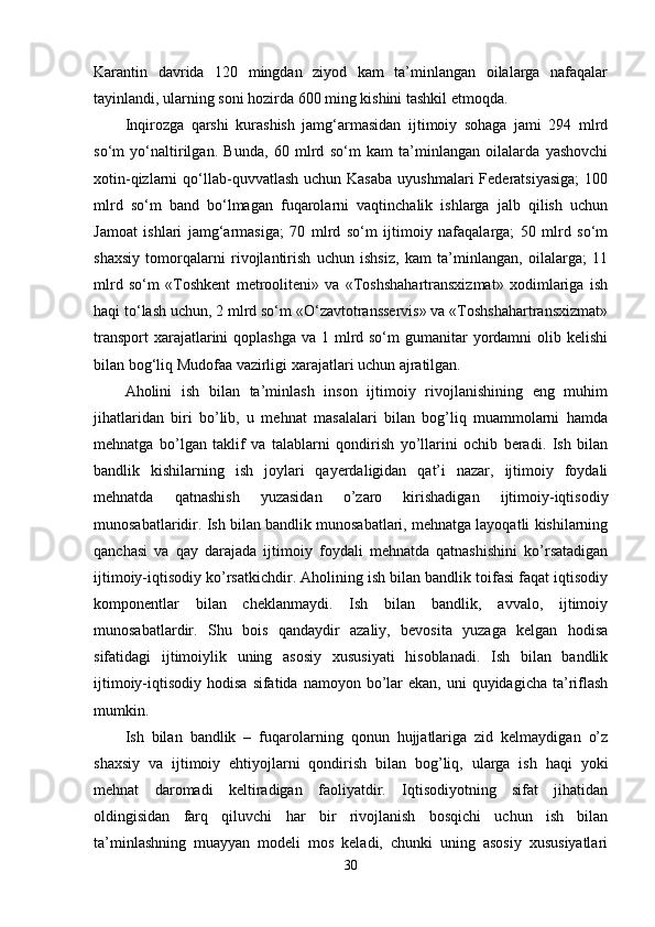 Аholini   ish   bilаn   tа’minlаsh   bu,   fuqаrolаrning   ehtiyojini   qondirish   bilаn
