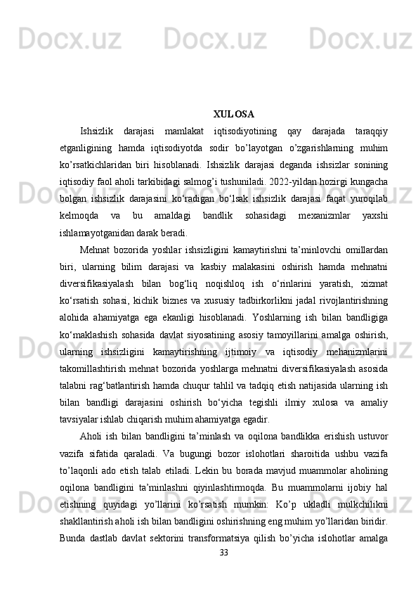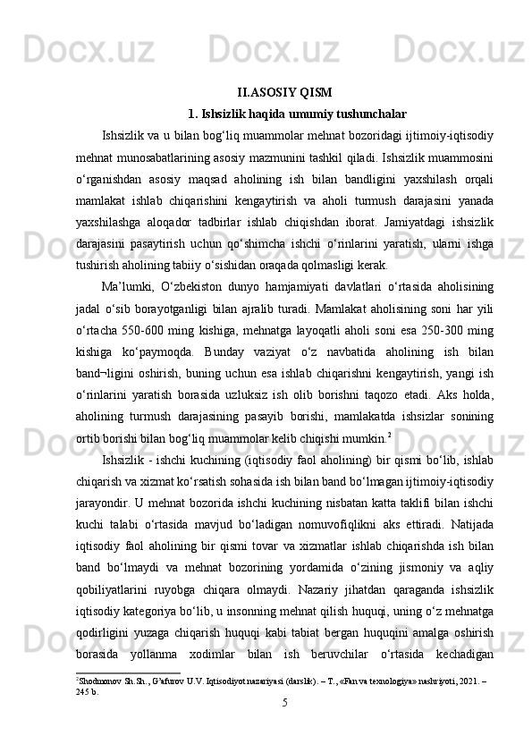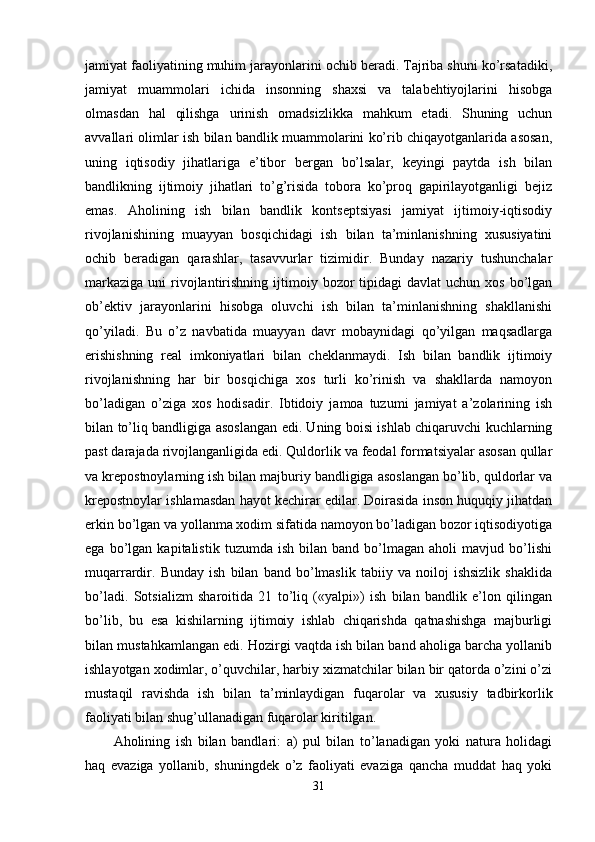 mehnat munosabatlarining asosiy mazmunini tashkil qiladi. Ishsizlik muammosini