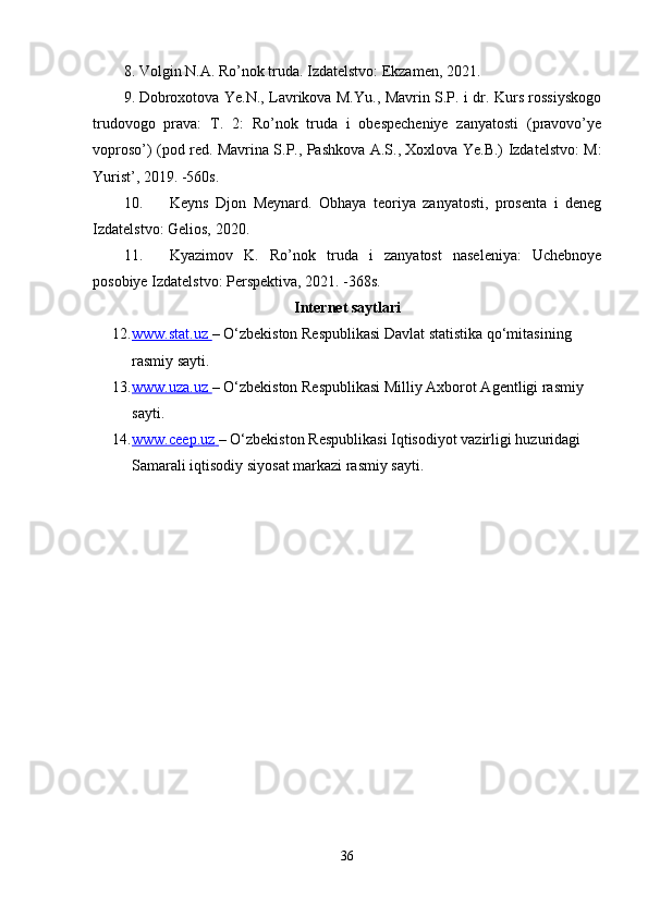 28 8. Volgin N.A. Ro’nok truda. Izdatelstvo: Ekzamen, 2021.