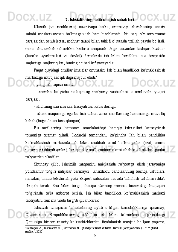 qobiliyatlarini   ruyobga   chiqara   olmaydi.   Nazariy   jihatdan   qaraganda   ishsizlik