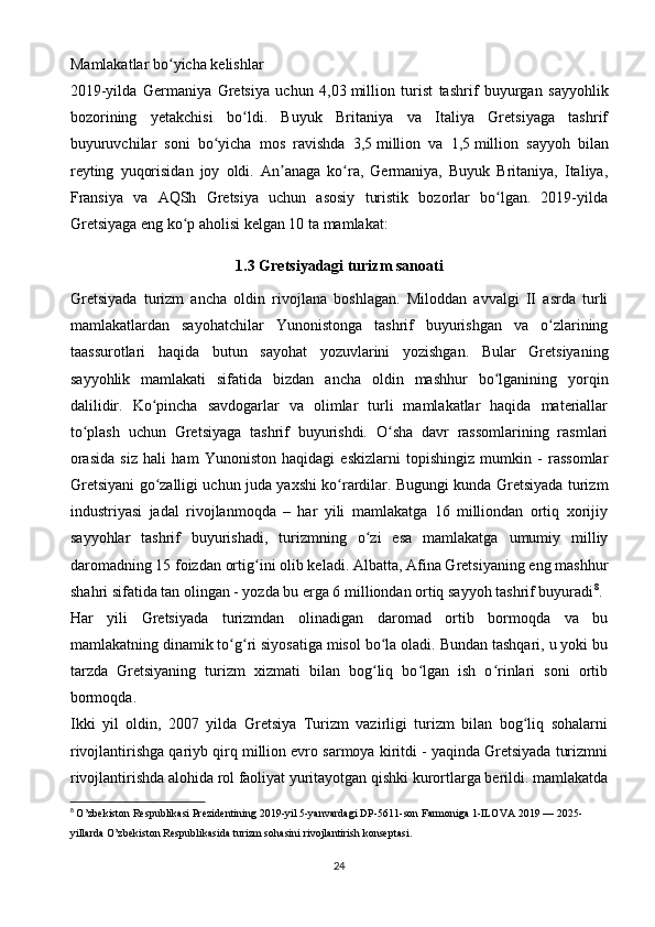 Xalqaro turizm fanidan Gretsiya turizmining rivojlanish xususiyatlari mavzusida kurs ishi