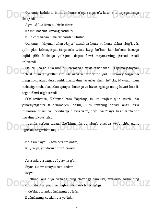 Gulxaniy masallarining ba’zi bir g’oyaviy-tematik xususiyatlari