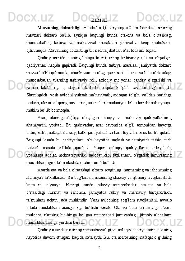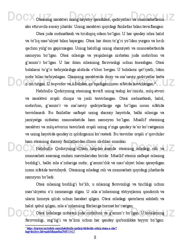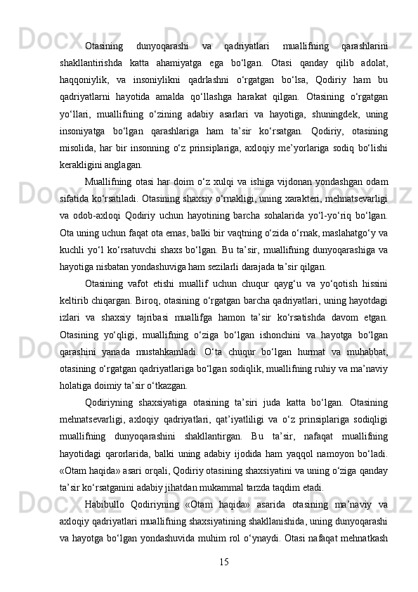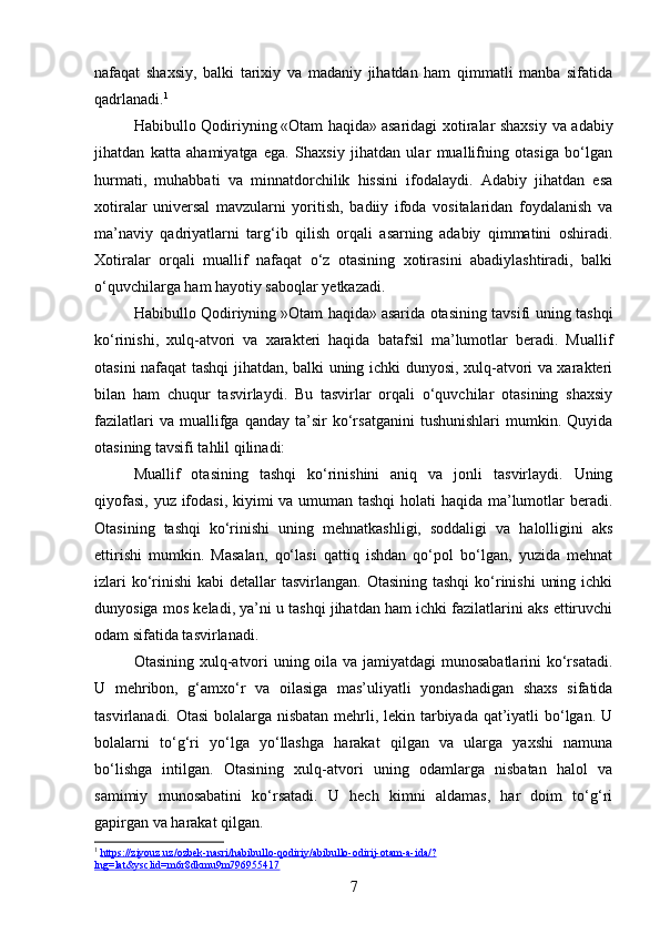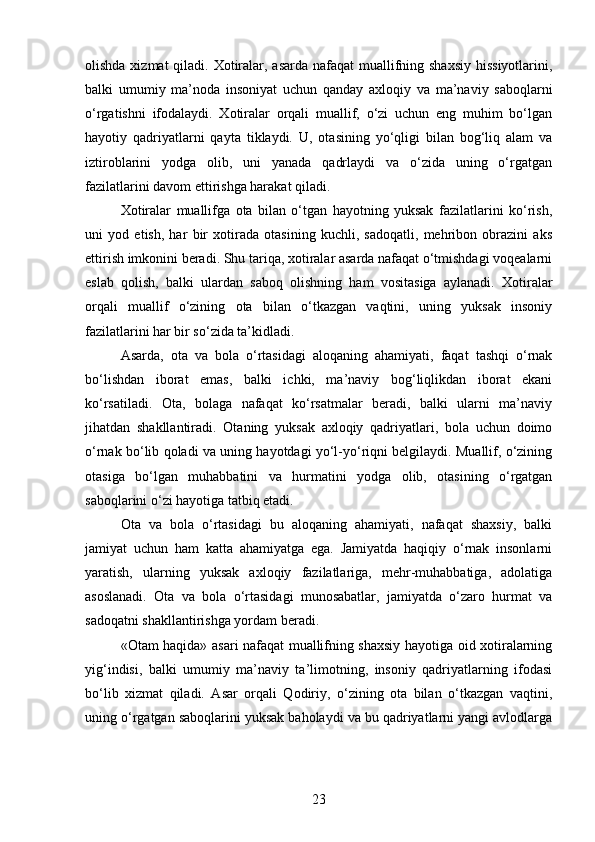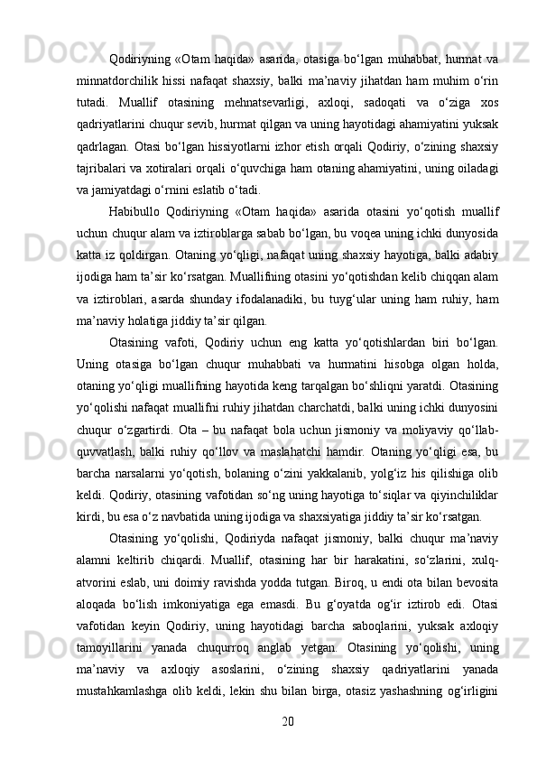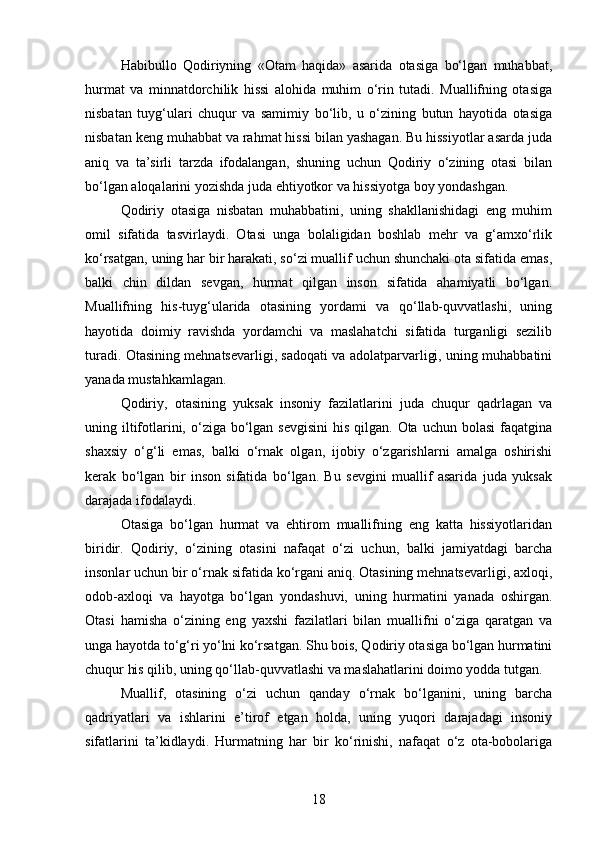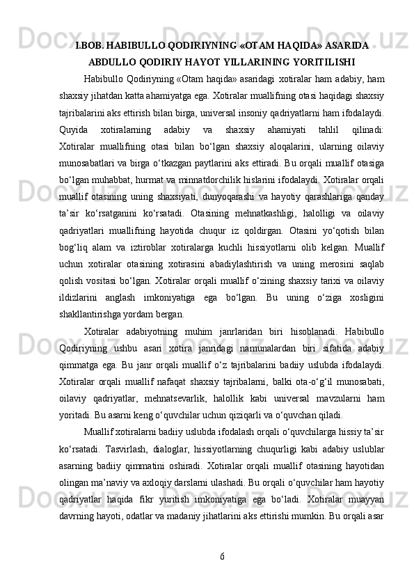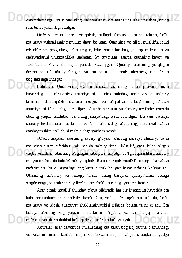 HABIBULLO QODIRIYNING «OTAM HAQIDA»NOMLI ESDALIKLARI