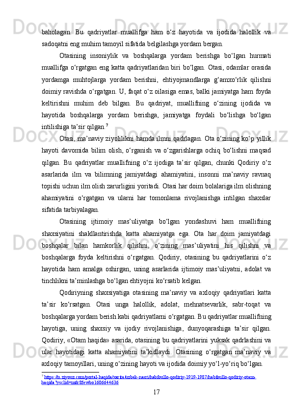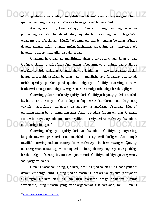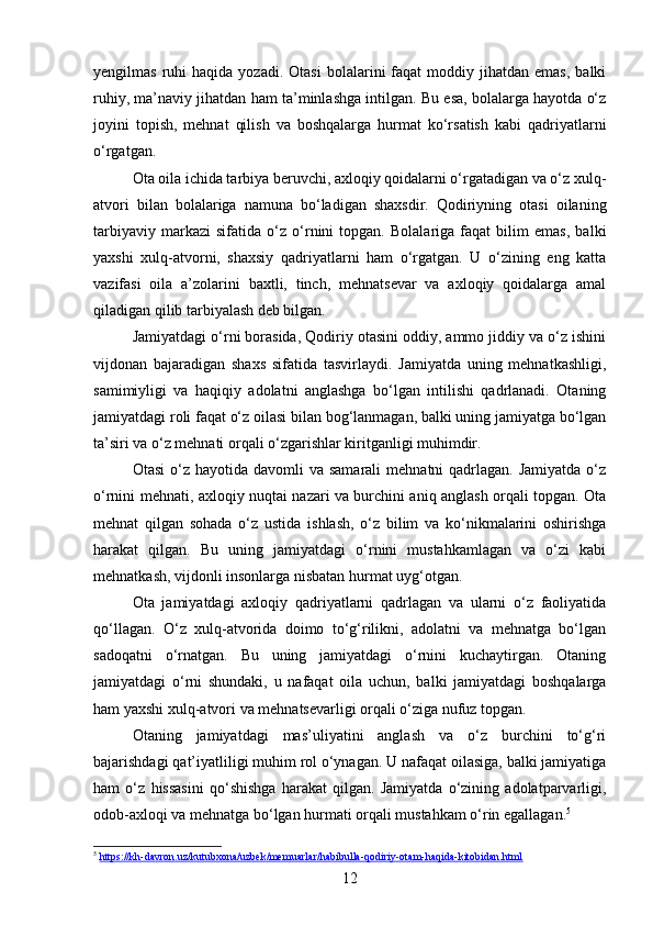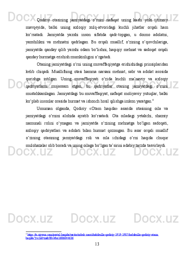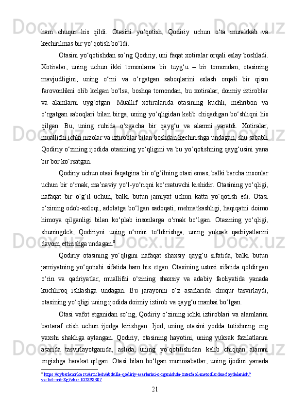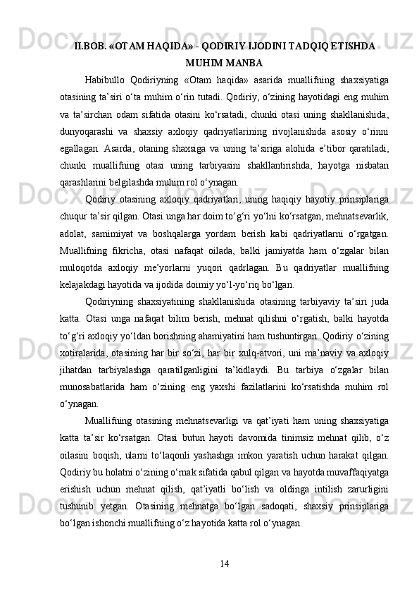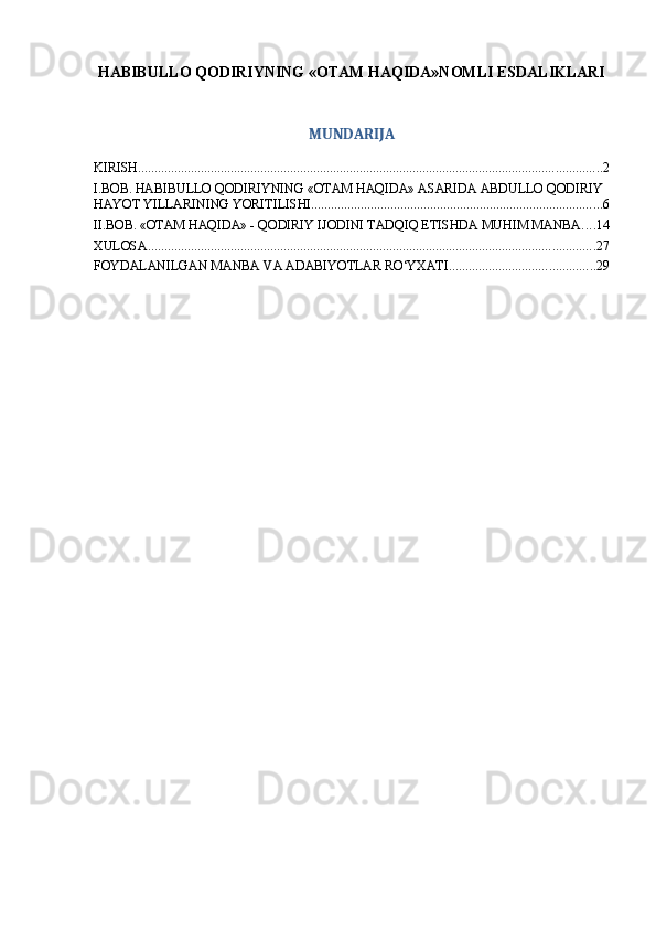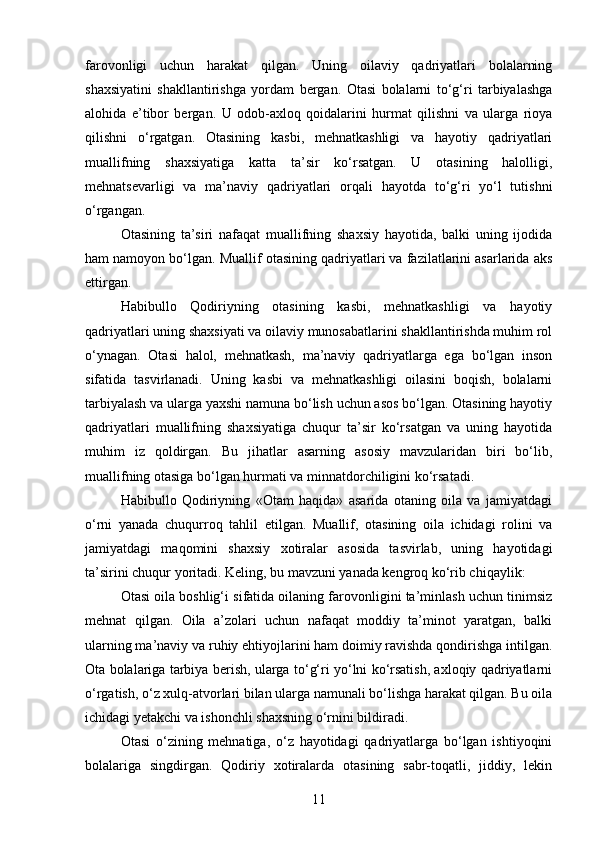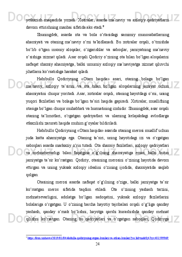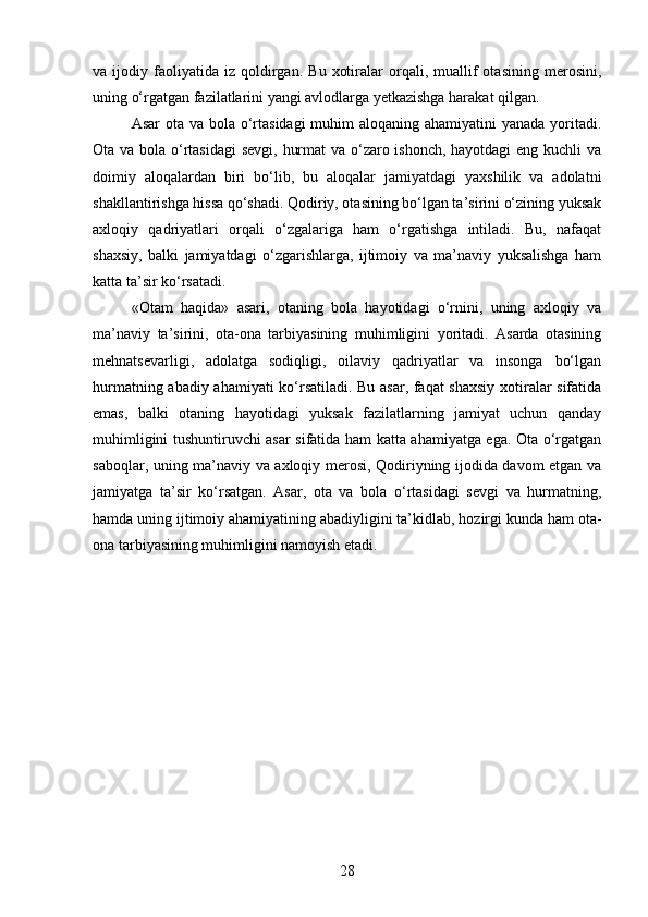 HABIBULLO QODIRIYNING «OTAM HAQIDA»NOMLI ESDALIKLARI