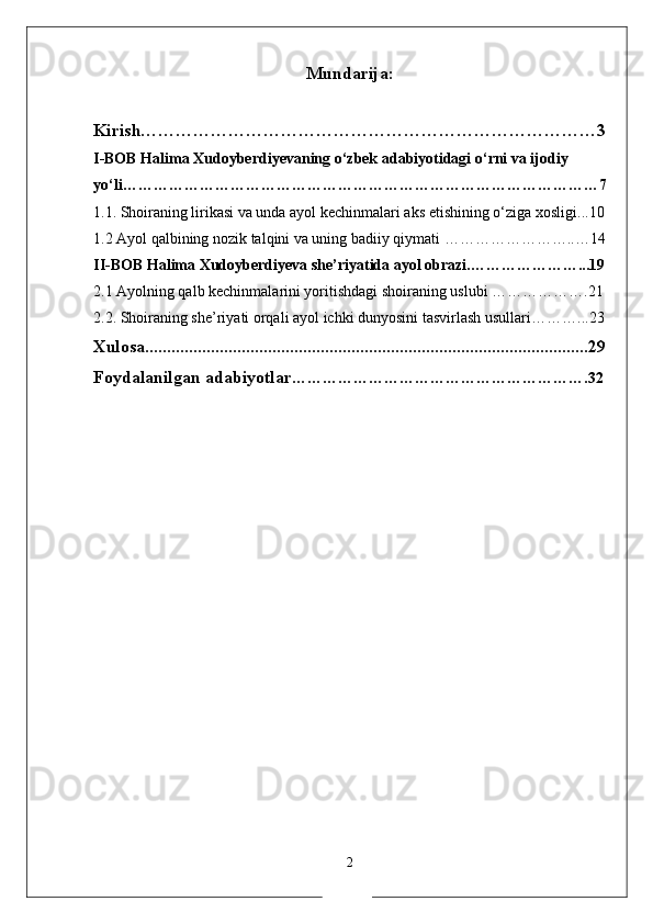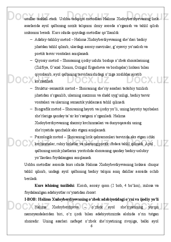 Halima Xudoyberdiyeva lirikasida ayol qalbinibg nozik talqini