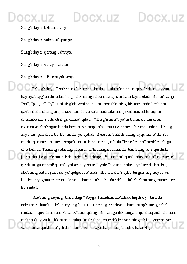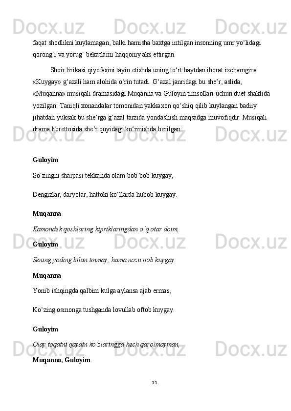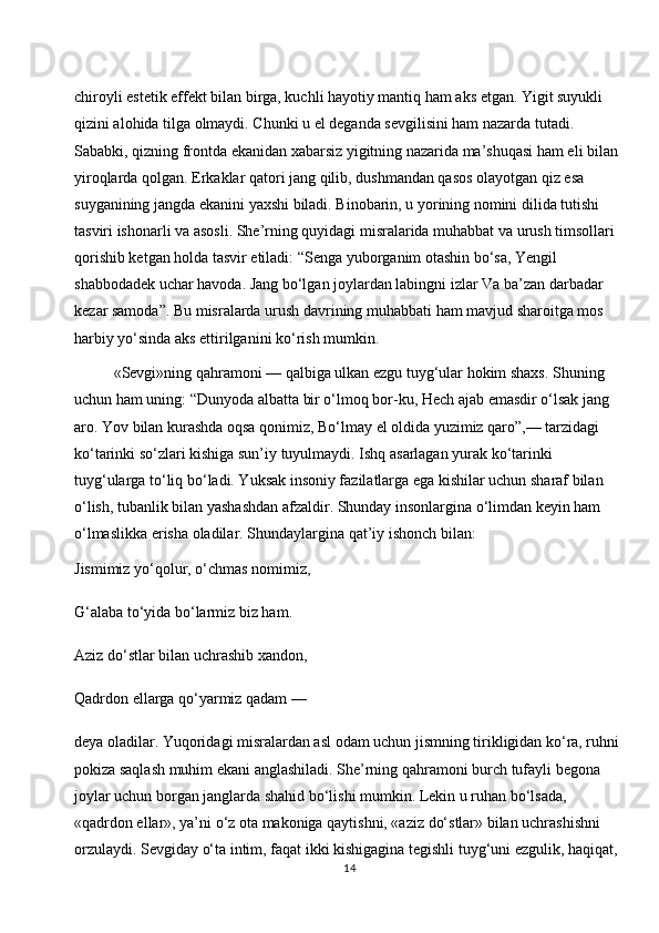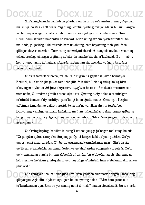 1.1 El qalbidagi shoir…………………………………………………………… 6