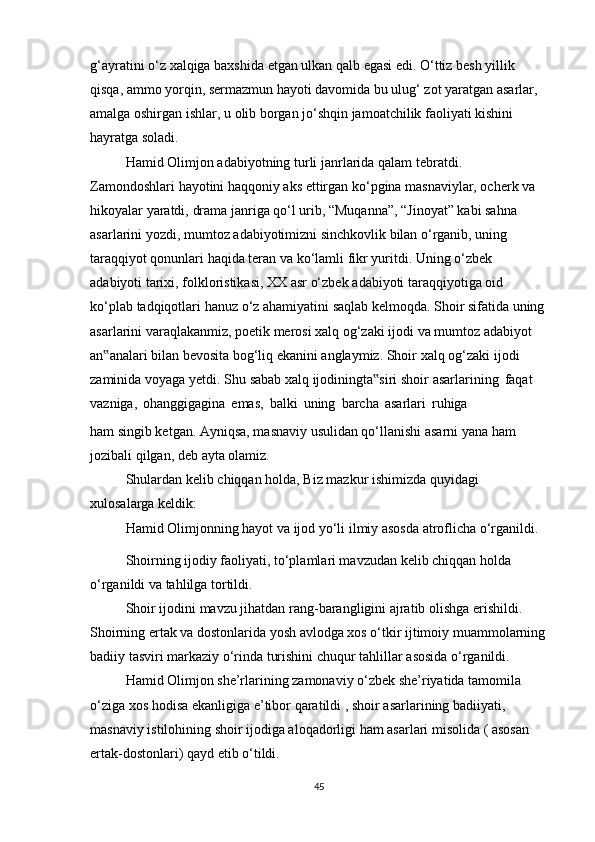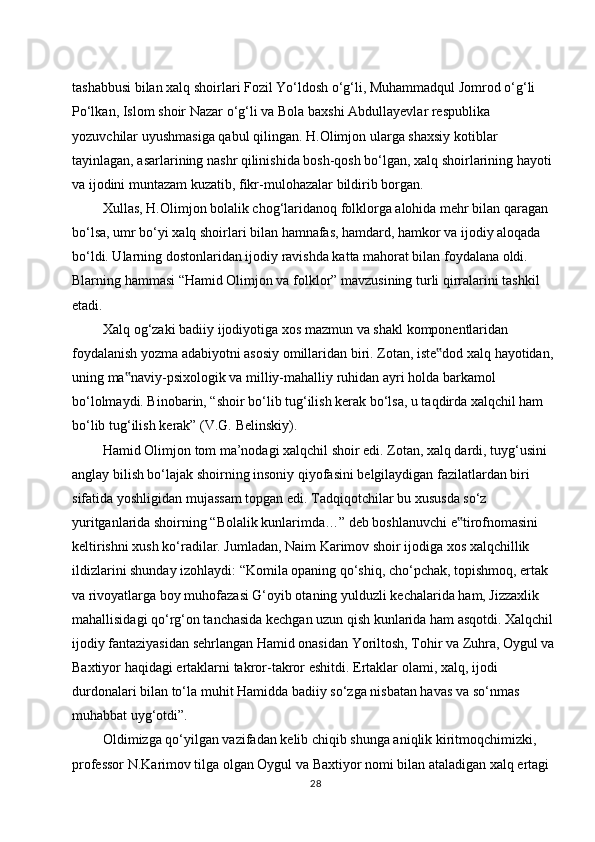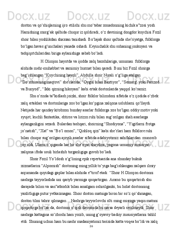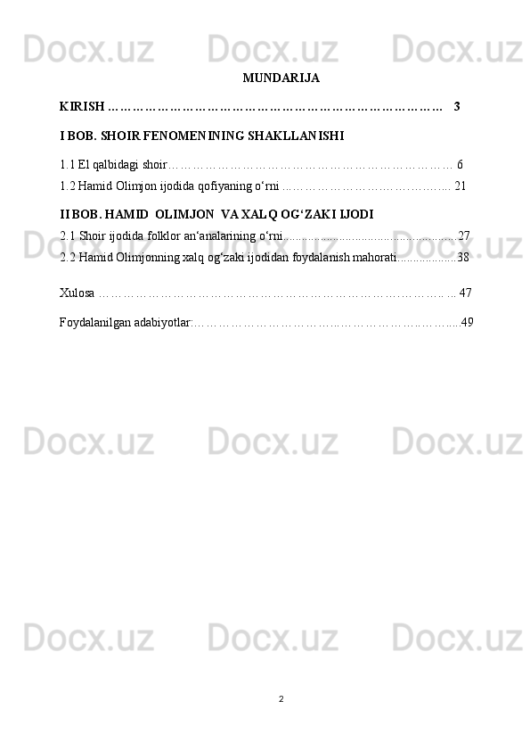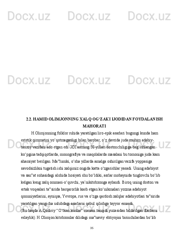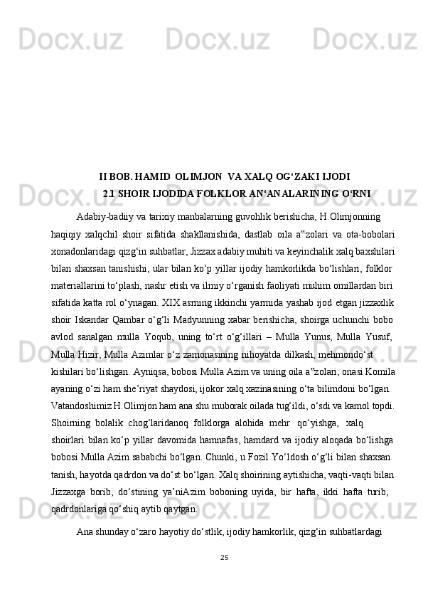 II BOB. HAMID OLIMJON VA XALQ OG‘ZAKIIJODI