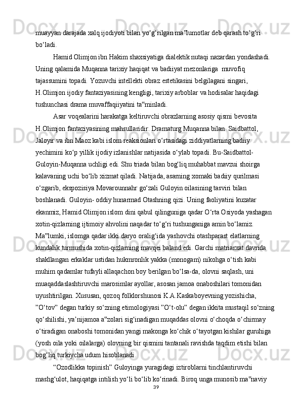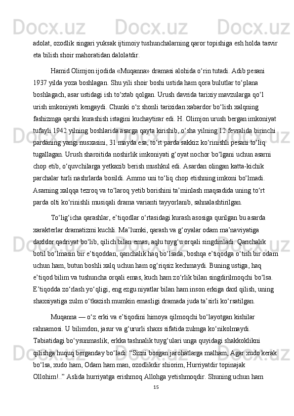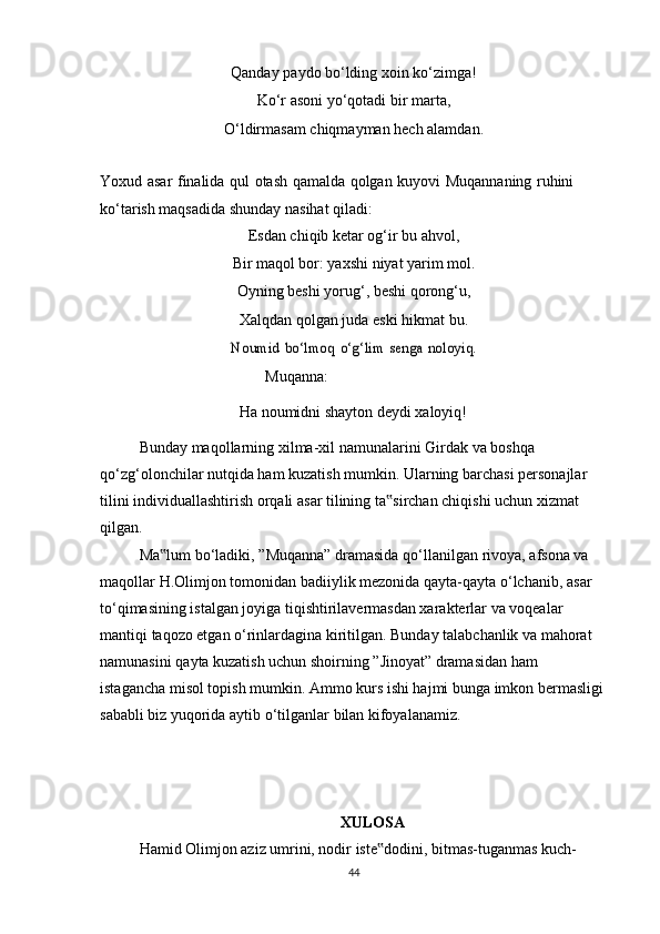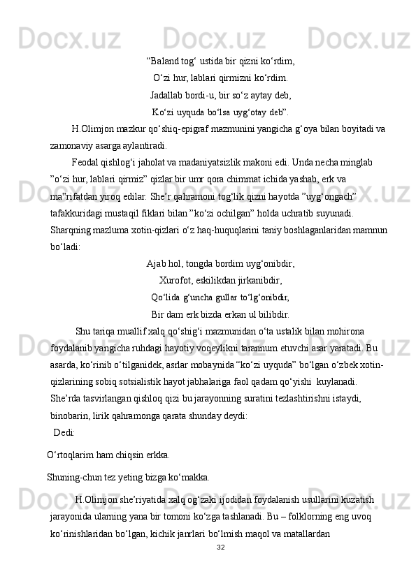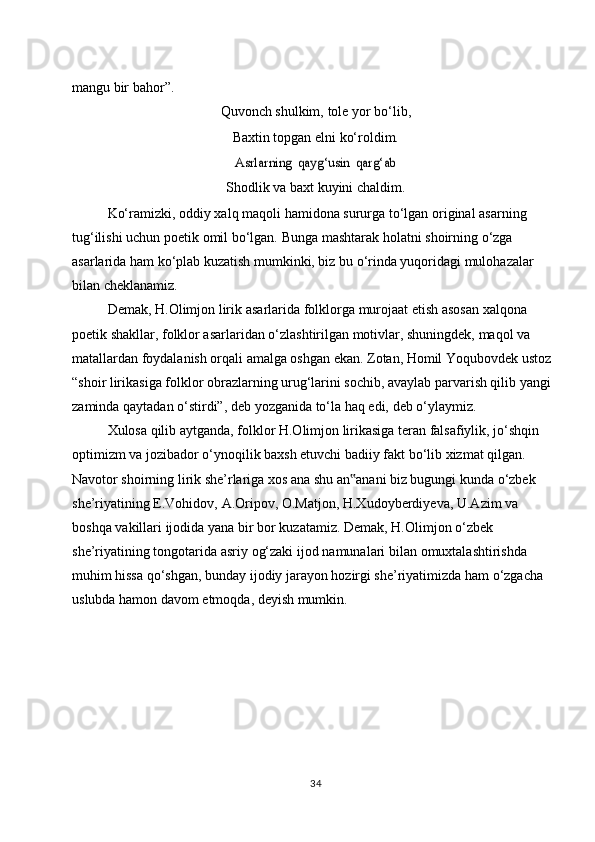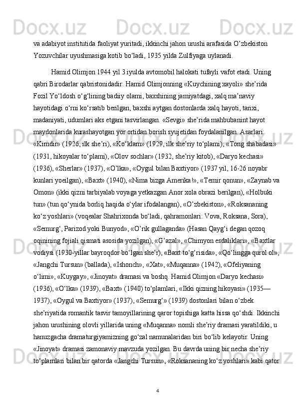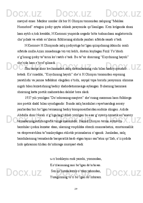 II BOB. HAMID OLIMJON VA XALQ OG‘ZAKIIJODI