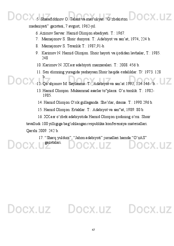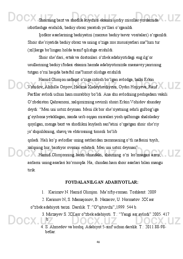 Foydalanilgan adabiyotlar:……………………………...………………..…….....49
