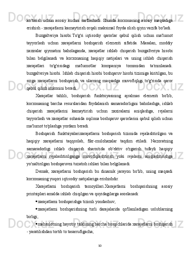 Korxonada   xarajatlarni   boshqarish   quyidagi   asosiy   vazifalarni   hal   qilishga