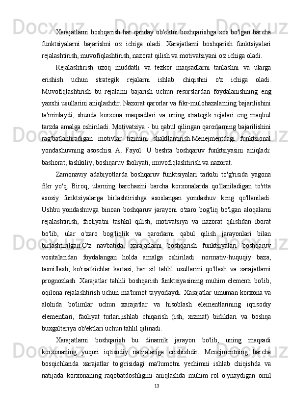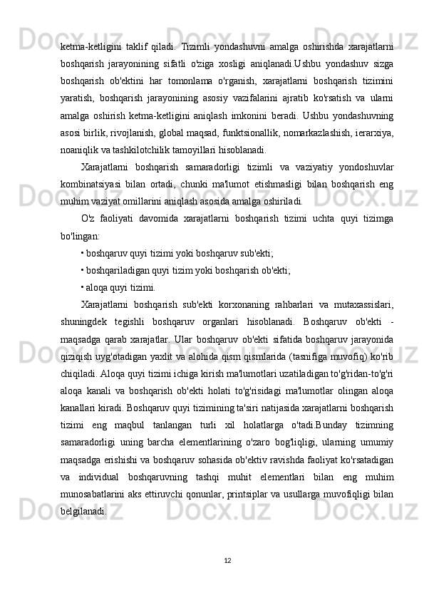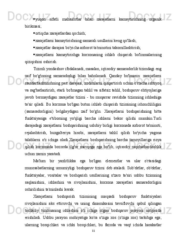 Tashkilot -samarali xarajatlarni boshqarishning muhim elementi. Bu korxona