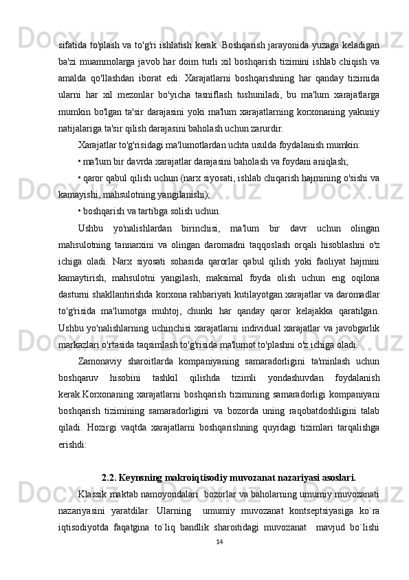  Iqtisodiy   ko'rsatkichlarni   oshirish   omili   sifatida   xarajatlarni   boshqarishning
