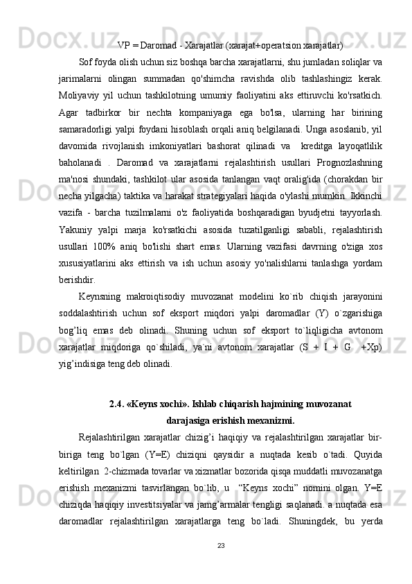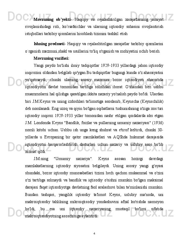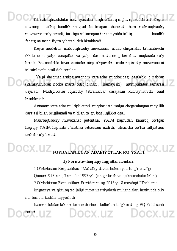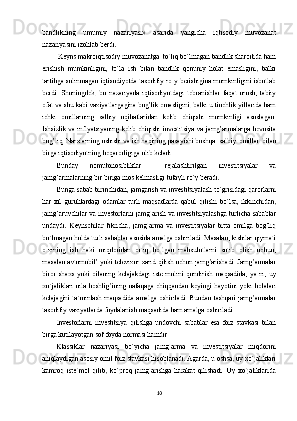2.2.Keynsning   makroiqtisodiy   muvozanat   nazariyasi   asoslari.   2. 3.