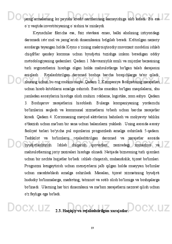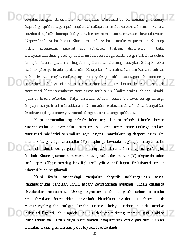 19 Rejalashtirilgan   daromadlar   va   xarajatlar   Daromad-bu   korxonaning   umumiy